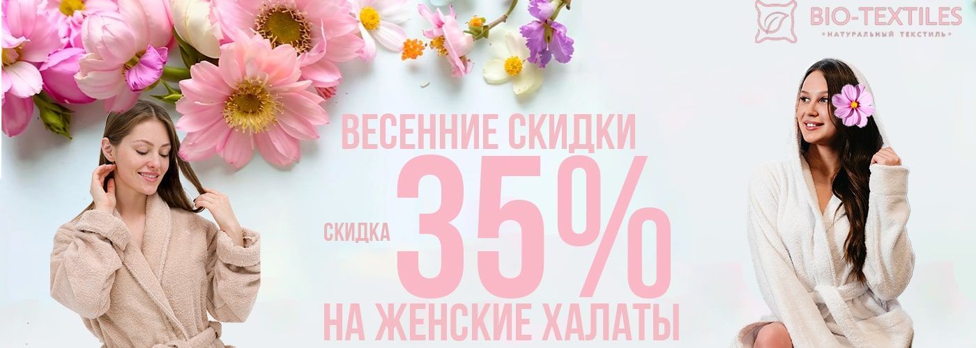 С 03.03 по 30.04 года скидка на женские махровые халаты ,определенного сегмента