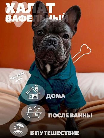 Халат для собак вафельный малахит