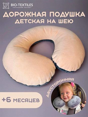 Подушка на шею "рогалик" детская 27*22 персик, т.серый