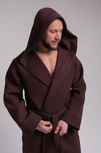 Халат вафельный с капюшоном, два цвета, темный шоколад