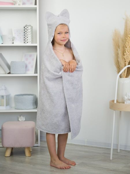 Накидка детская с капюшоном "КОТИКИ" 110*70 см, светло-серый