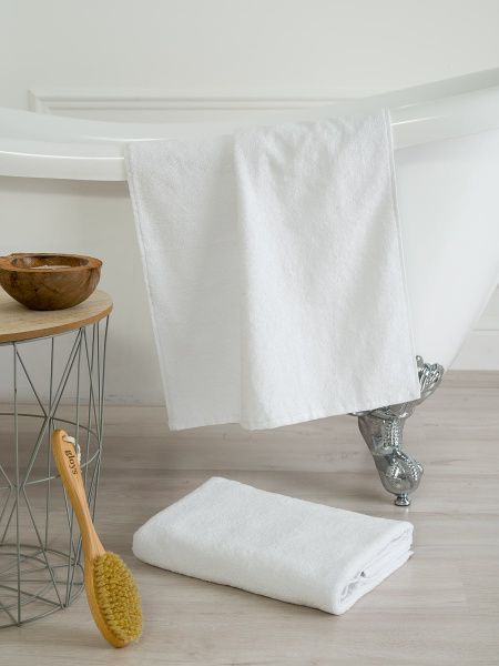 Белое махровое полотенце для Гостиниц 450 гр./м.кв. низкая петля