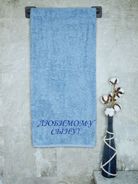 Полотенце с вышивкой 70*140 "Любимый сын" лазурный