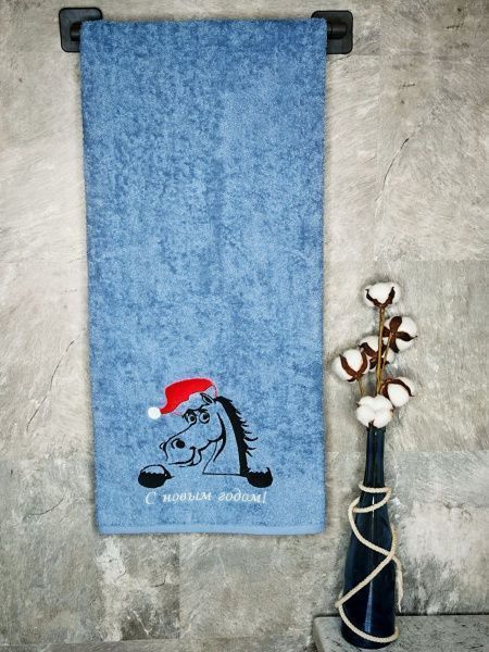 Полотенце с вышивкой 70*140 "Новый год Лошадь" лазурный