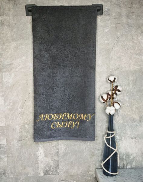 Полотенце с вышивкой 70*140 "Любимый сын" темно-серый