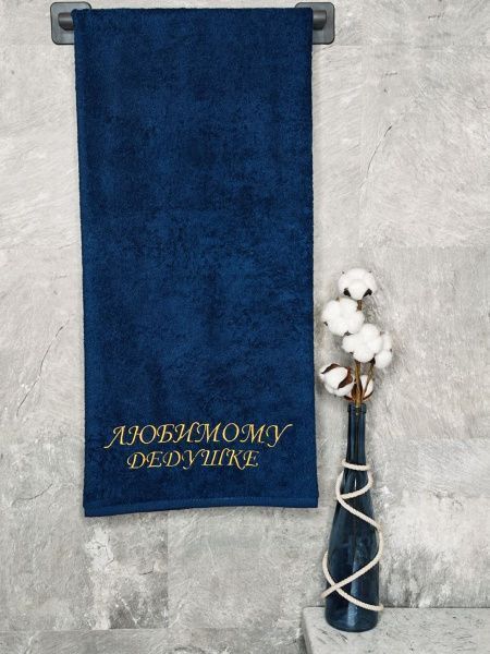 Полотенце с вышивкой 70*140 "Любимому дедушке" темно-синее