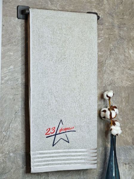 Полотенце с вышивкой 70*140 "23 февраля" светло-серое