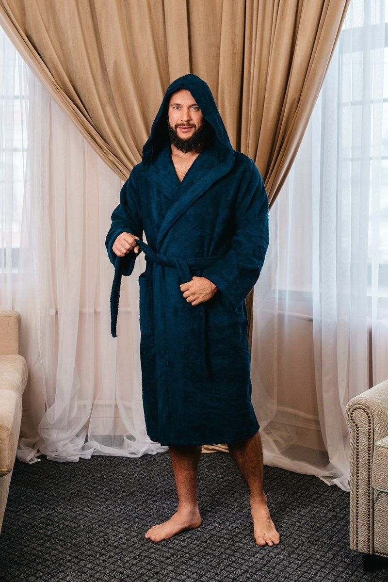 снимок Халат махровый с капюшоном, темно-синий от магазина BIO-TEXTILES ОПТ