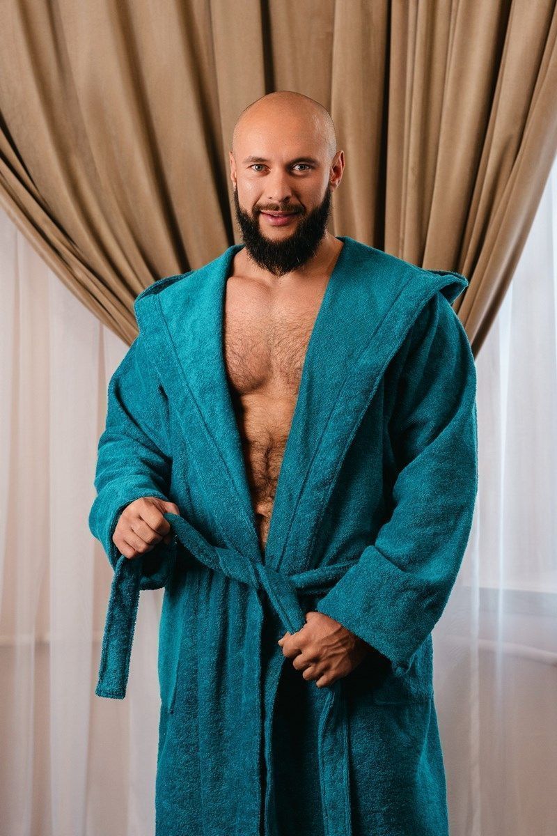 снимок Халат махровый с капюшоном, морская волна от магазина BIO-TEXTILES ОПТ