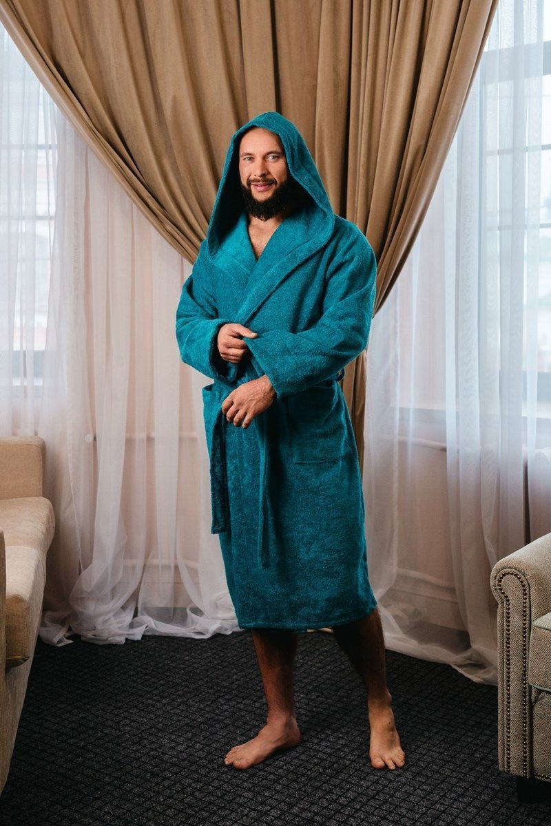 Махровая ткань из 100% хлопка идеально согревает и быстро высушивает кожу после водных процедур. Капюшон убережет шею и голову от сквозняков и резкой смене внешней температуры, особенно актуально при посещении бани в холодное время года.