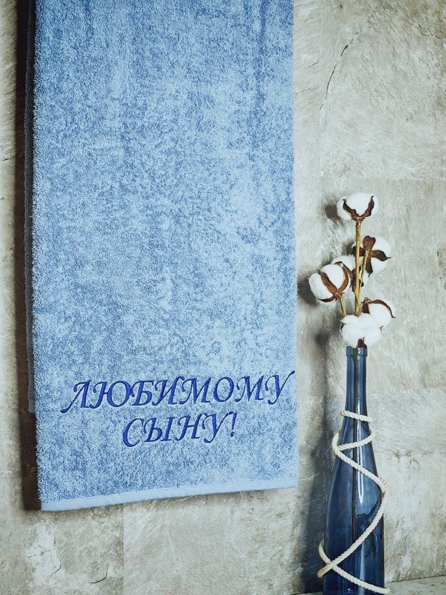 Полотенце с вышивкой 70*140 "Любимый сын" лазурный POL/любим_сын_ЛАЗУРЬ