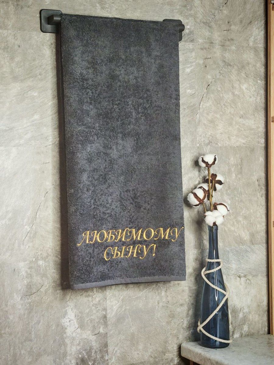 Полотенце с вышивкой 70*140 "Любимый сын" темно-серый