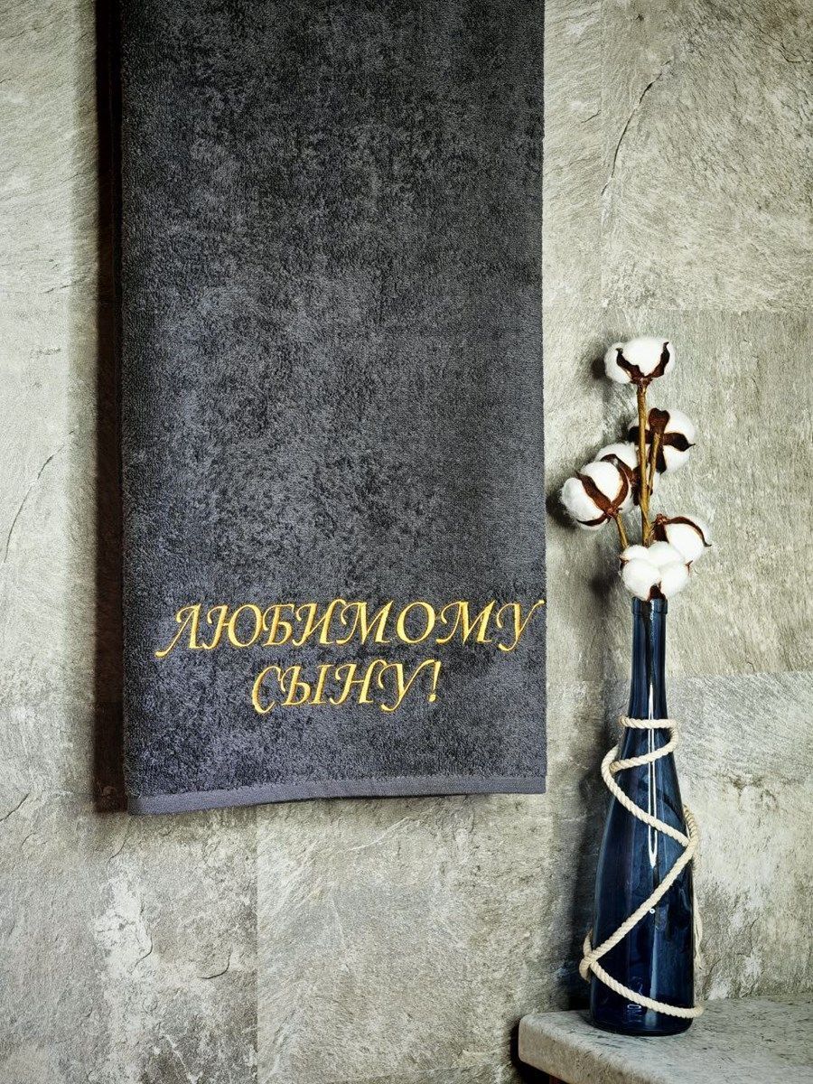 Полотенце с вышивкой 70*140 "Любимый сын" темно-серый POL/любим_сын_серый
