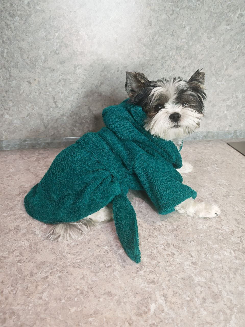 Посадка: Халат не сковывает движения, обеспечивая питомцу полную свободу.