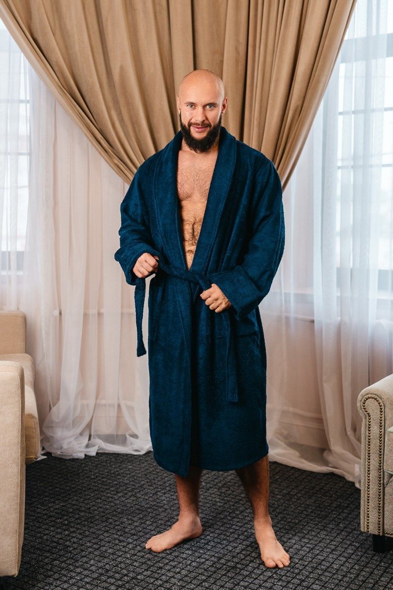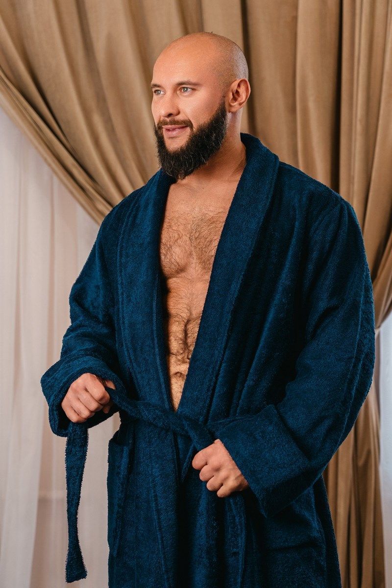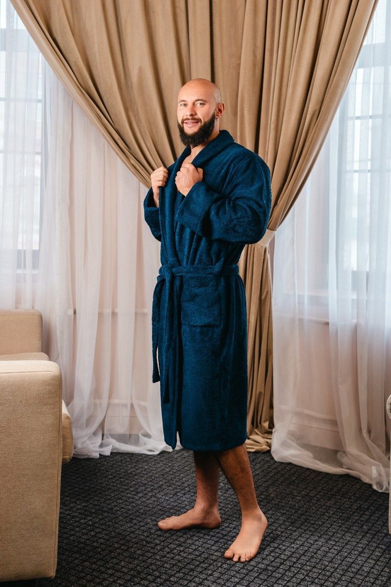 Стильный и удобный махровый халат для мужчин обеспечит комфорт и практичность. Качественная махровая ткань выполнена из натурального хлопка в Узбекистане. Благодаря крою халата, он очень удобен, свободно «сидит».