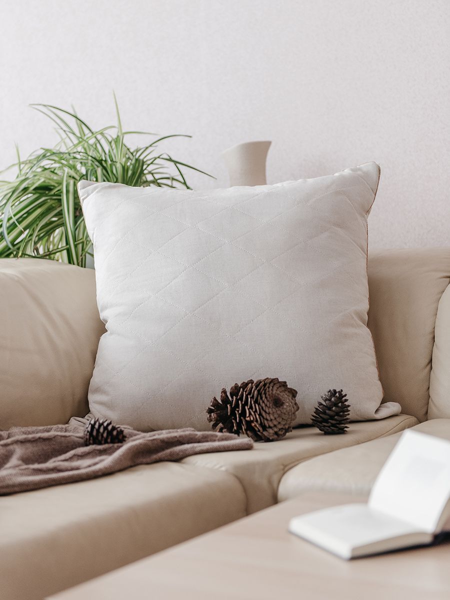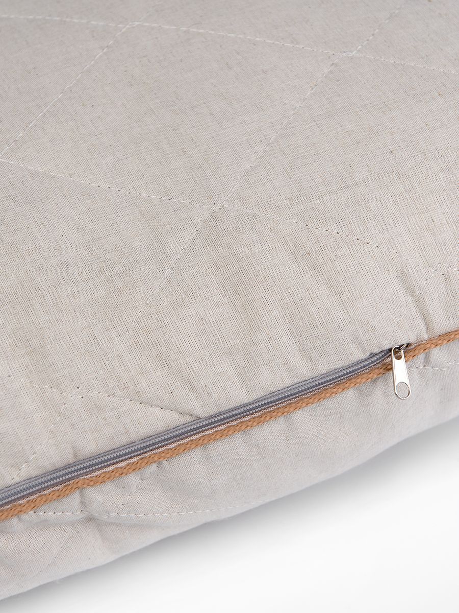 Подушка выполнена в уникальном чехле, который представляет собой натуральный лен, простеганный верблюжьей шерстью. Благодаря такой стёжке жёсткая гречишная подушка стала теплее и мягче на поверхности.