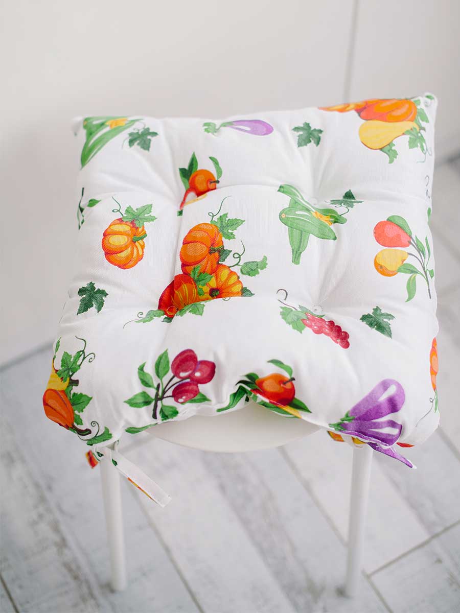Мягкие подушки для стульев с привлекательными расцветками «оживят» интерьер вашей кухни и сделают её более уютной и комфортной.