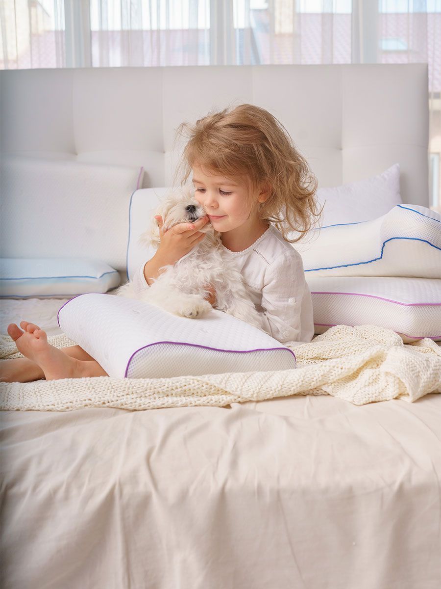 Подушка Эрго Юниор разработана специально для детей от 3 до 7 лет. Подушка волнообразной формы со сторонами разной высоты: 6 см и 8 см.