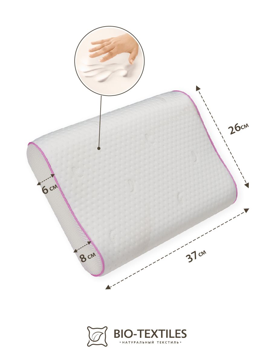 Материал подушки — гипоаллергенный высокоэластичный пенополиуретан с эффектом памяти. Материал не накапливает пыль, в нем не распространяются бактерии.
