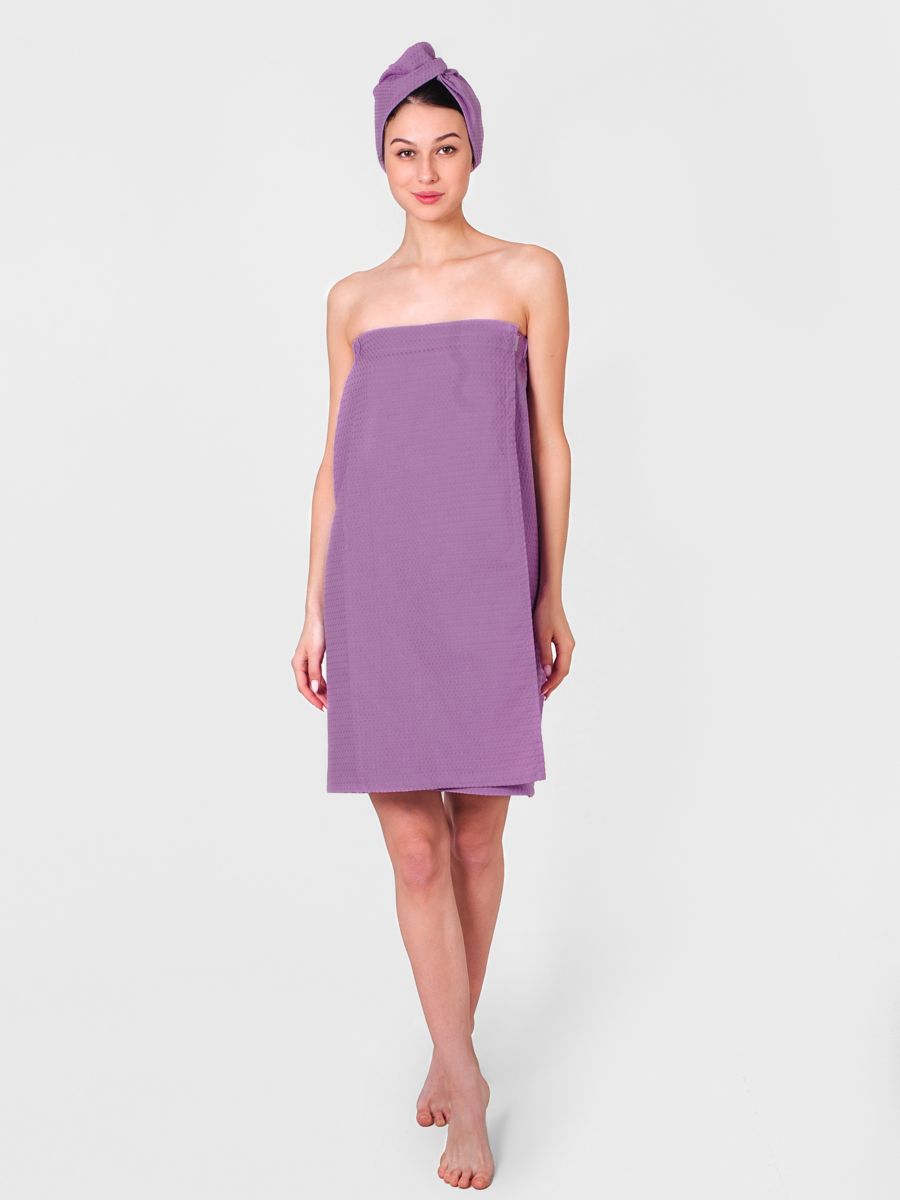 Вафельный набор для бани — отличная альтернатива классическому  полотенцу, в которое оборачивают тело. Парео не спадает и не стесняет движений , а удобная вафельная чалма надежно защищает волосы от негативного воздействия повышенной влажности, перепада температур и косметики. Чалма станет вашим стильным аксессуаром в сауне, SPA-салоне и дома, с ее помощью вы сможете быстро и деликатно подсушить волосы и при этом общаться или заниматься другими делами.