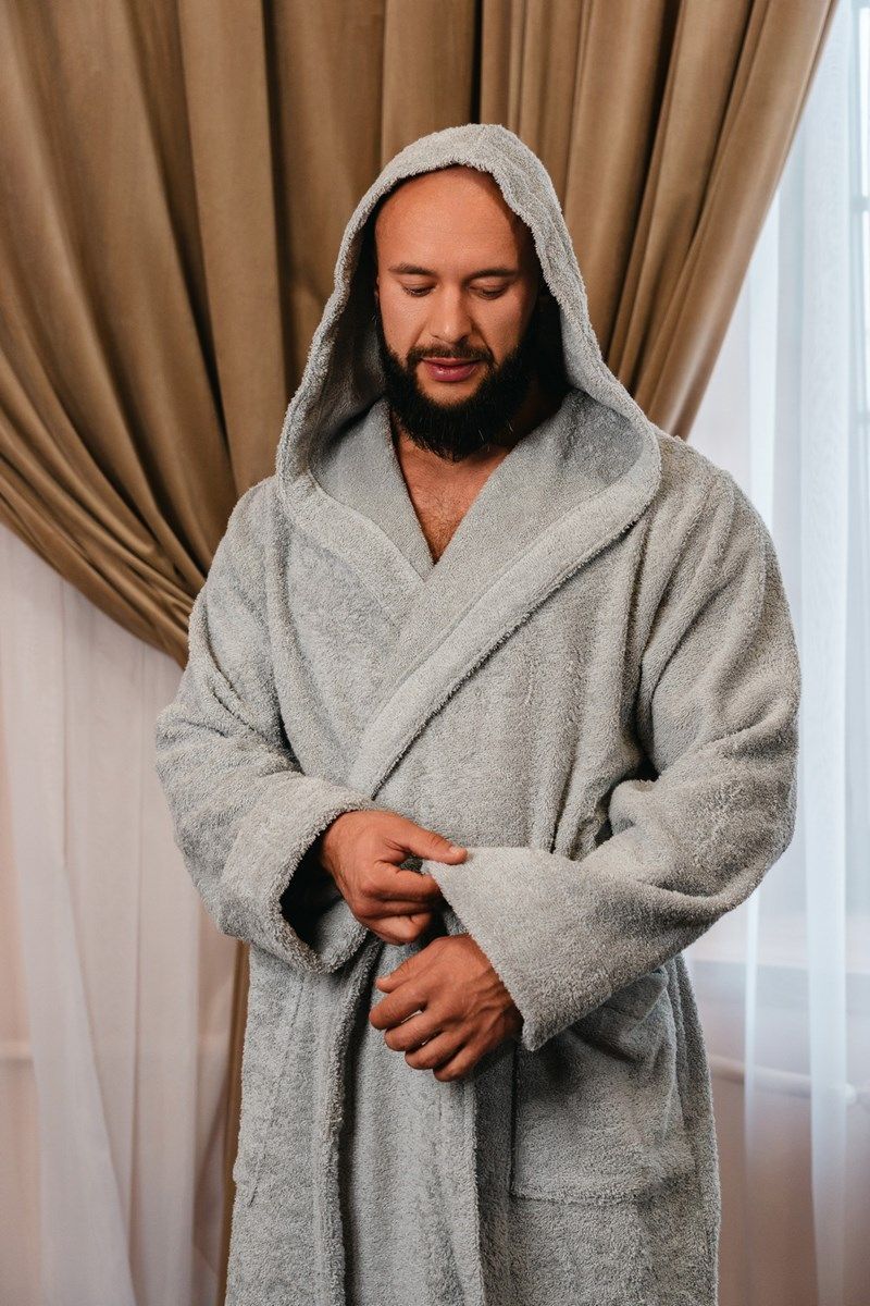 Стильный и удобный махровый халат для мужчин создан подарить максимум комфорта. Качественная махровая ткань выполнена из натурального хлопка в Узбекистане. Благодаря крою халата, он очень удобен, «сидит» свободно.