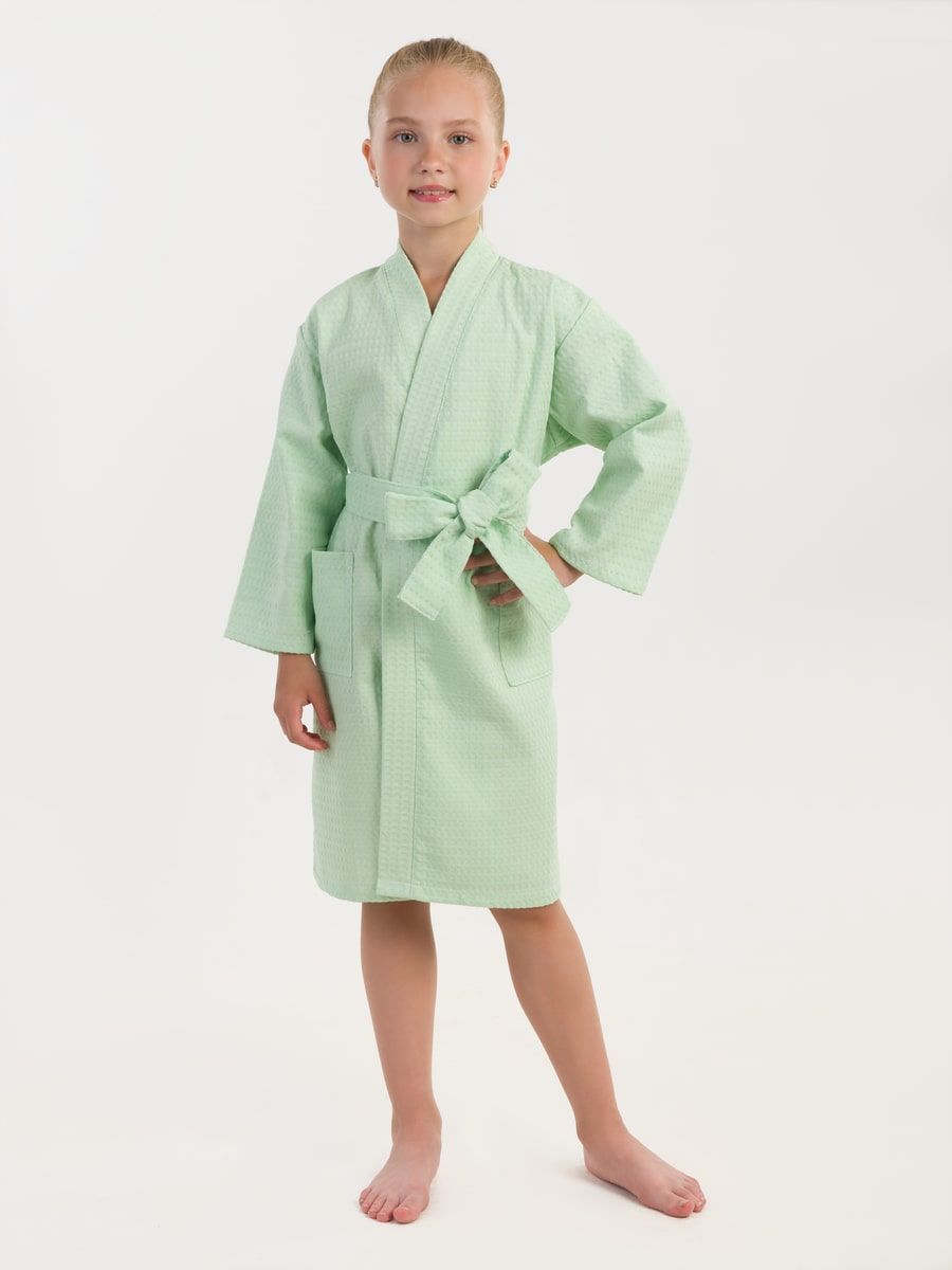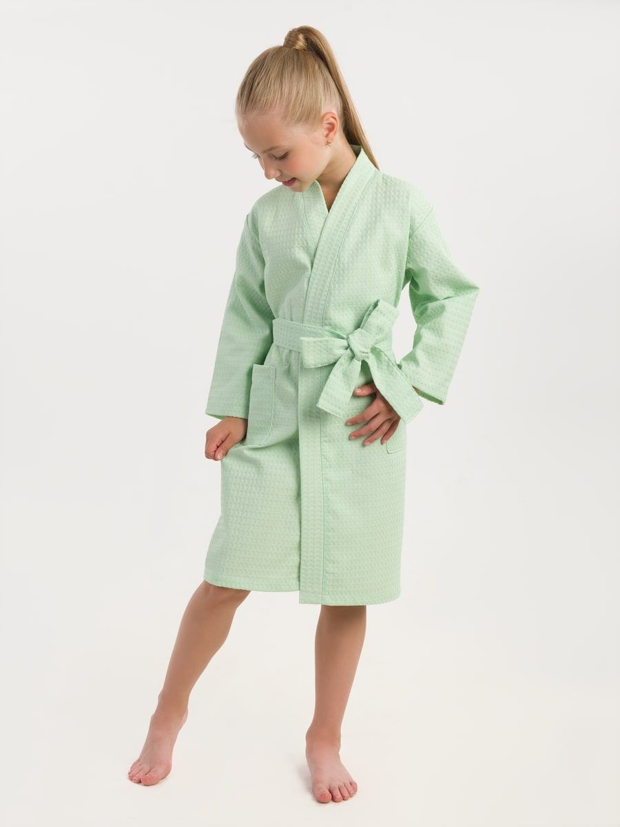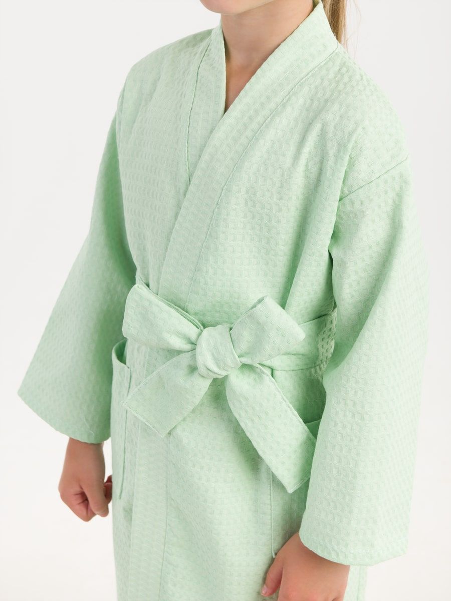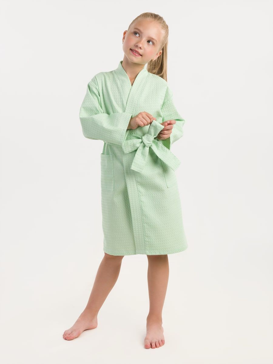 Вафельный халатик для детей, выполненный из натурального материала – 100% хлопка с карманом, удобен и универсален.  Ткань не вызывает аллергии и раздражения кожи, прекрасно пропускает воздух,  быстро впитывает влагу и так же мгновенно сохнет.   Форма халата с запахом и широким поясом позволит использовать его долгое время, несмотря на быстрый рост ребенка. Поэтому для домашнего ухода за детьми вафельный халат является одной из самых удобных и практичных вещей.   Халат из вафельной ткани легкий и практичный, благодаря натуральному составу ткани сохраняется комфортная температура тела,  идеальная для жаркого лета.   После любых водных процедур, вафельный халатик создаст приятную прохладу и быстро высушит тело, он свободный и приятный к детской коже.