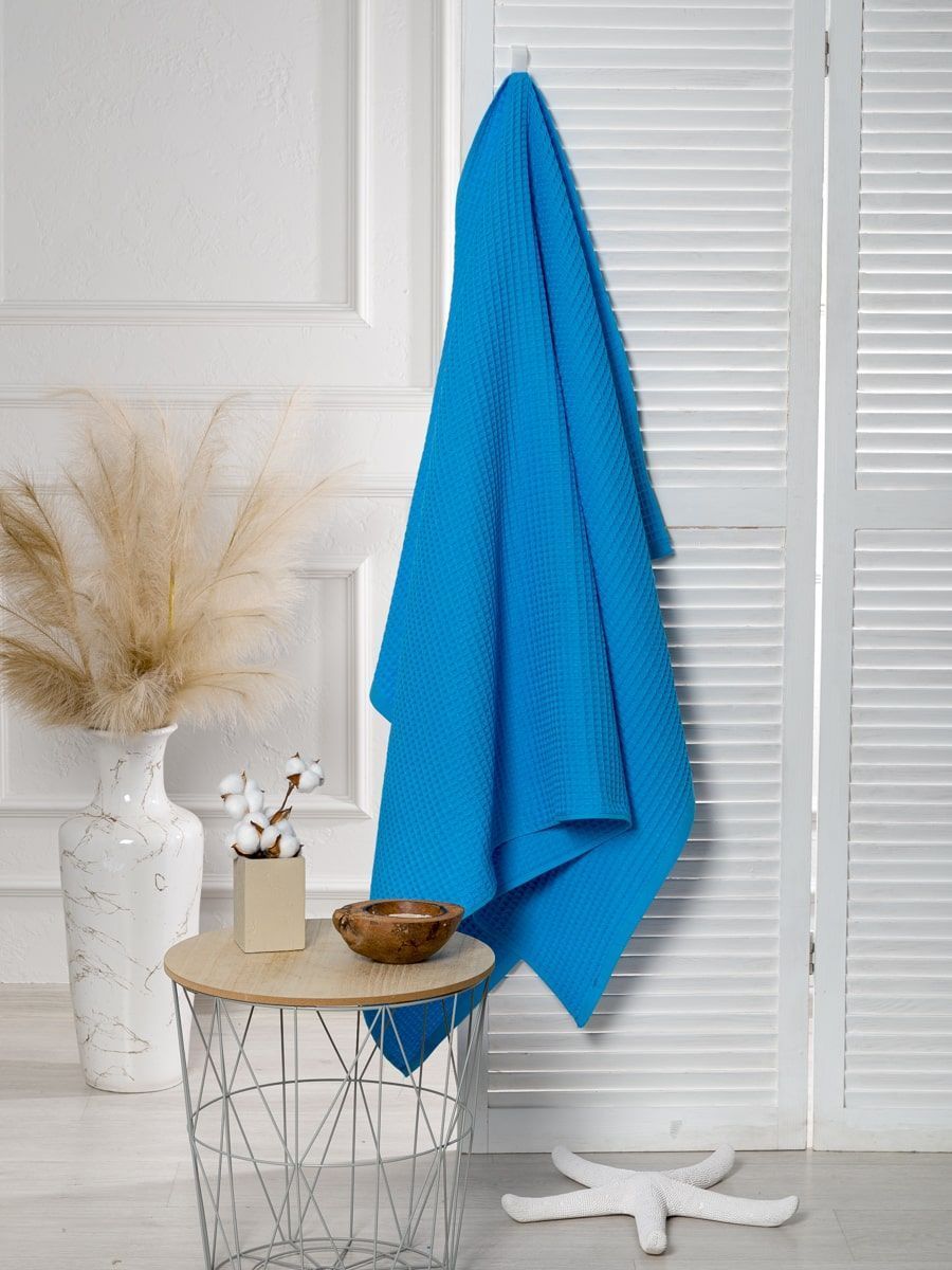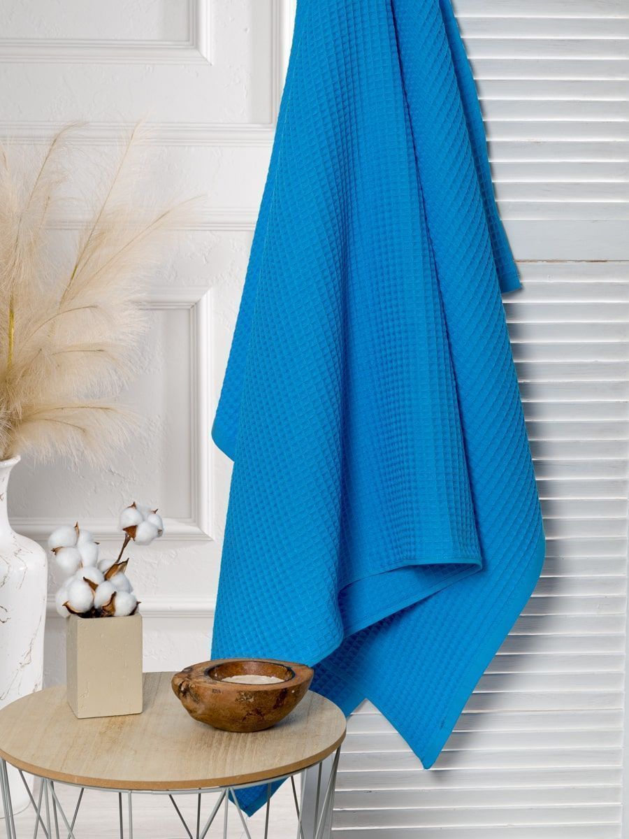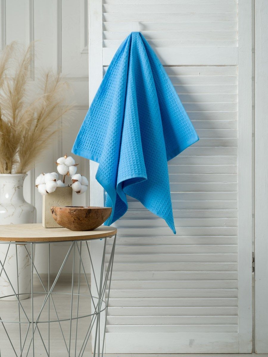 Полотенце вафельное голубое