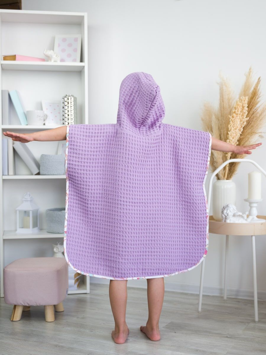 Пончо после купания гораздо удобнее для детей, чем обычные полотенца или халаты. Оно легко надевается через голову, поэтому малыш сможет проявлять самостоятельность и справляться без вашей помощи. Не сковывает движения, не имеет завязок и поясов, поэтому ничто не будет мешать вашему чаду во время игр.