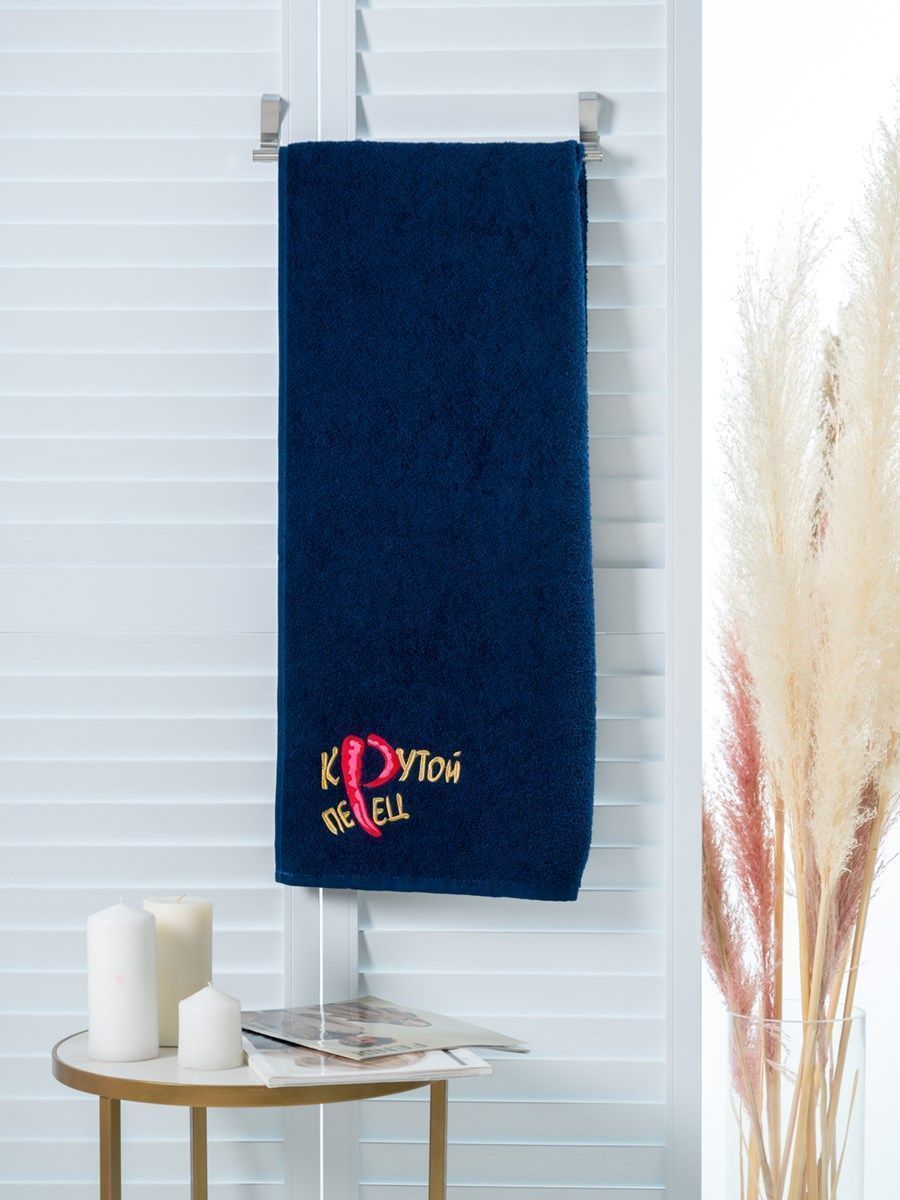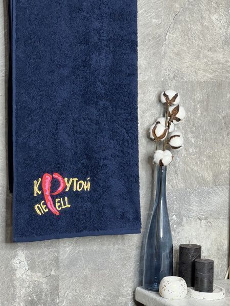 Полотенце с вышивкой 70*140 "перец" темно-синее POL/перец