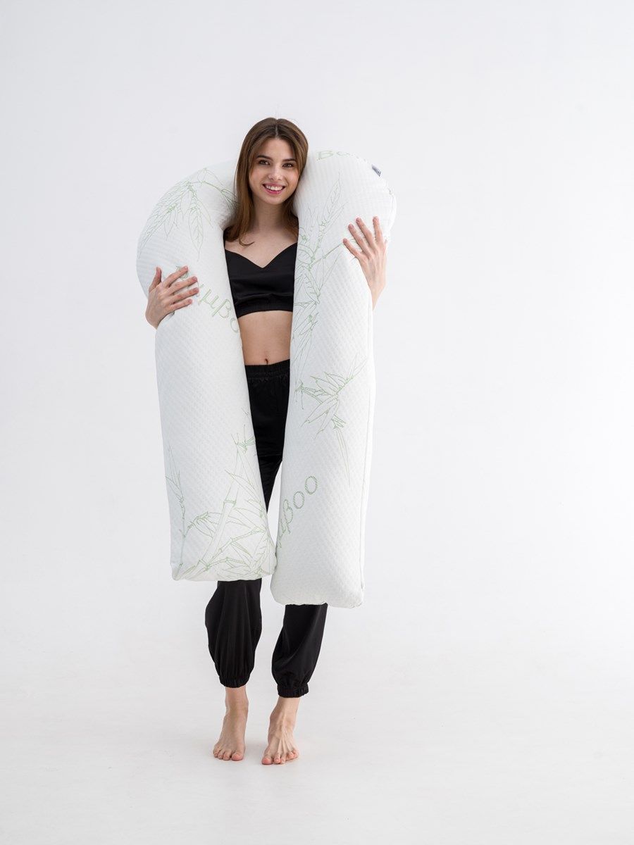 Подушка для беременных "BAMBOO" вернет полноценный качественный сон и значительно упростит жизнь будущим мамам. Она поможет поддержать живот спину и шею в правильном анатомическом положении. Использовать U-образную подушку можно не только тем, кто в положении: она подходит и для кормления малыша. Да что говорить, на ней простой удобно спать и женщинам, и мужчинам, и детям!