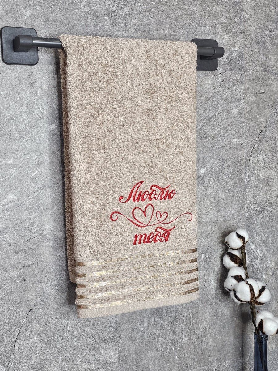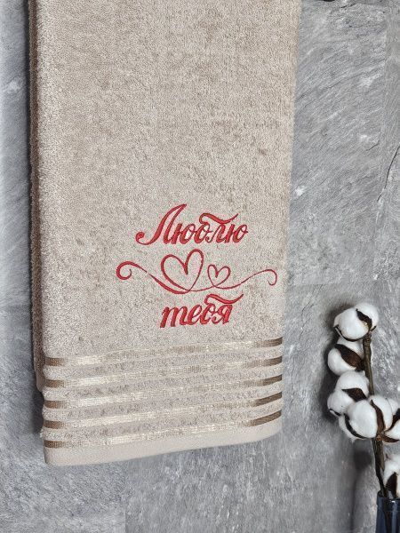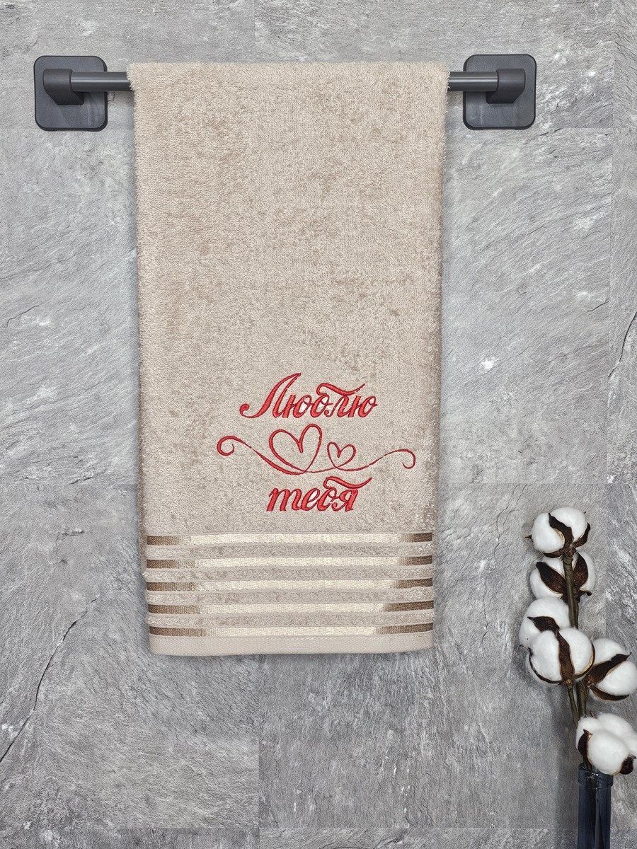 Полотенце с вышивкой 50*90 "люблю тебя" бежевое