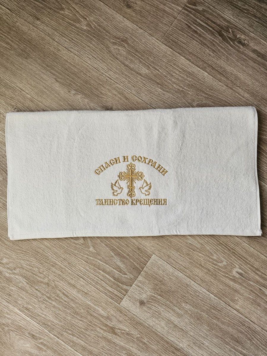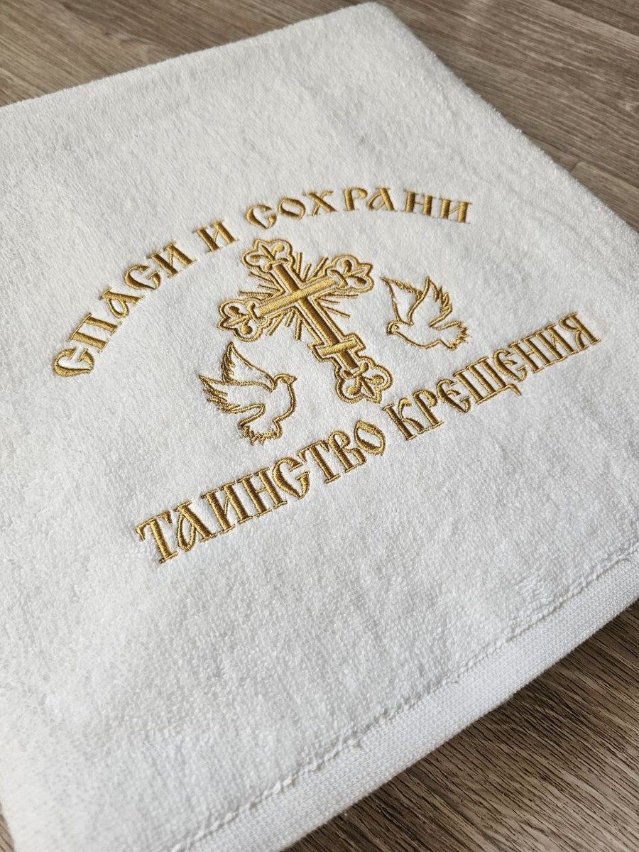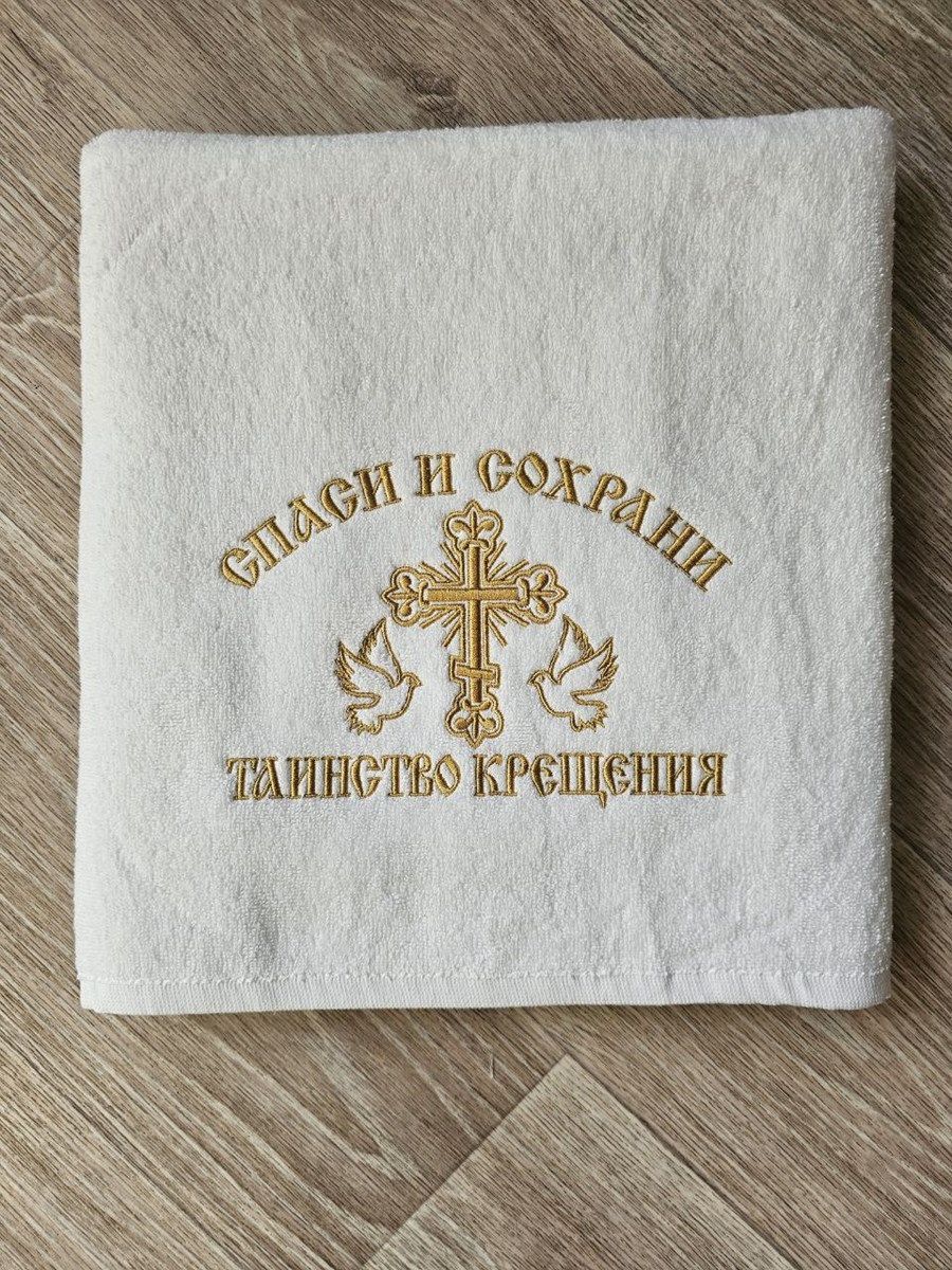 Полотенце с вышивкой 70*140 "спаси и сохрани" белое (заказ от 10шт.)