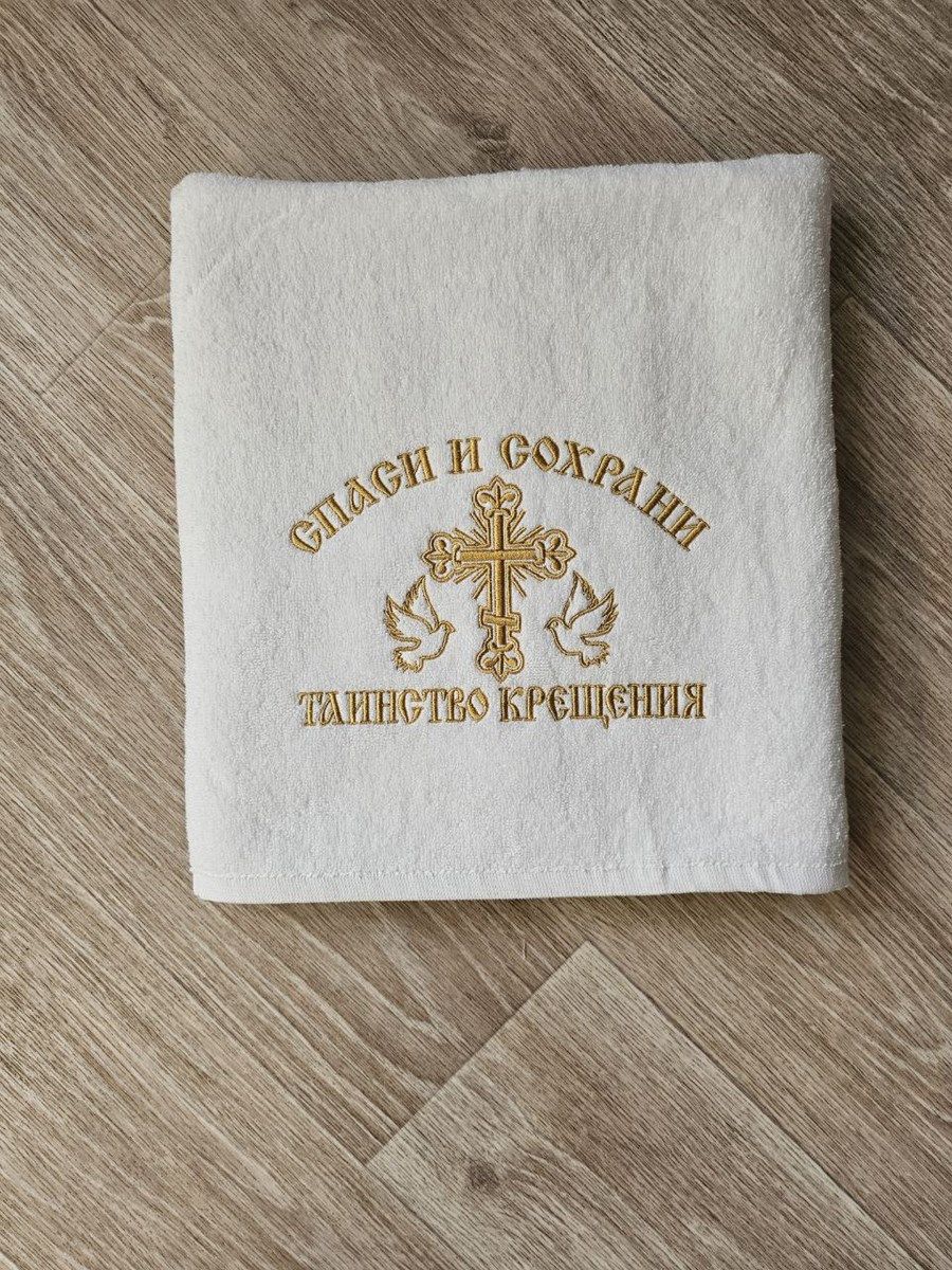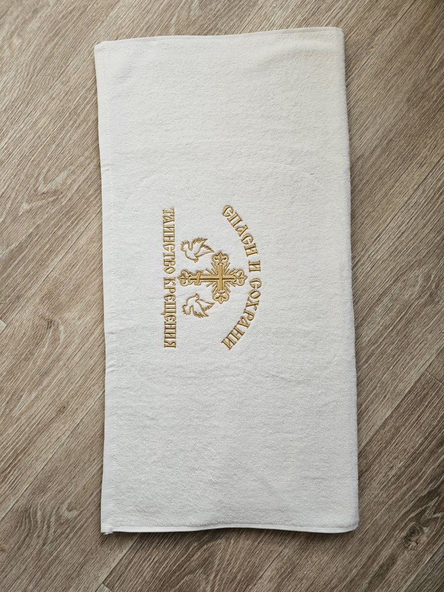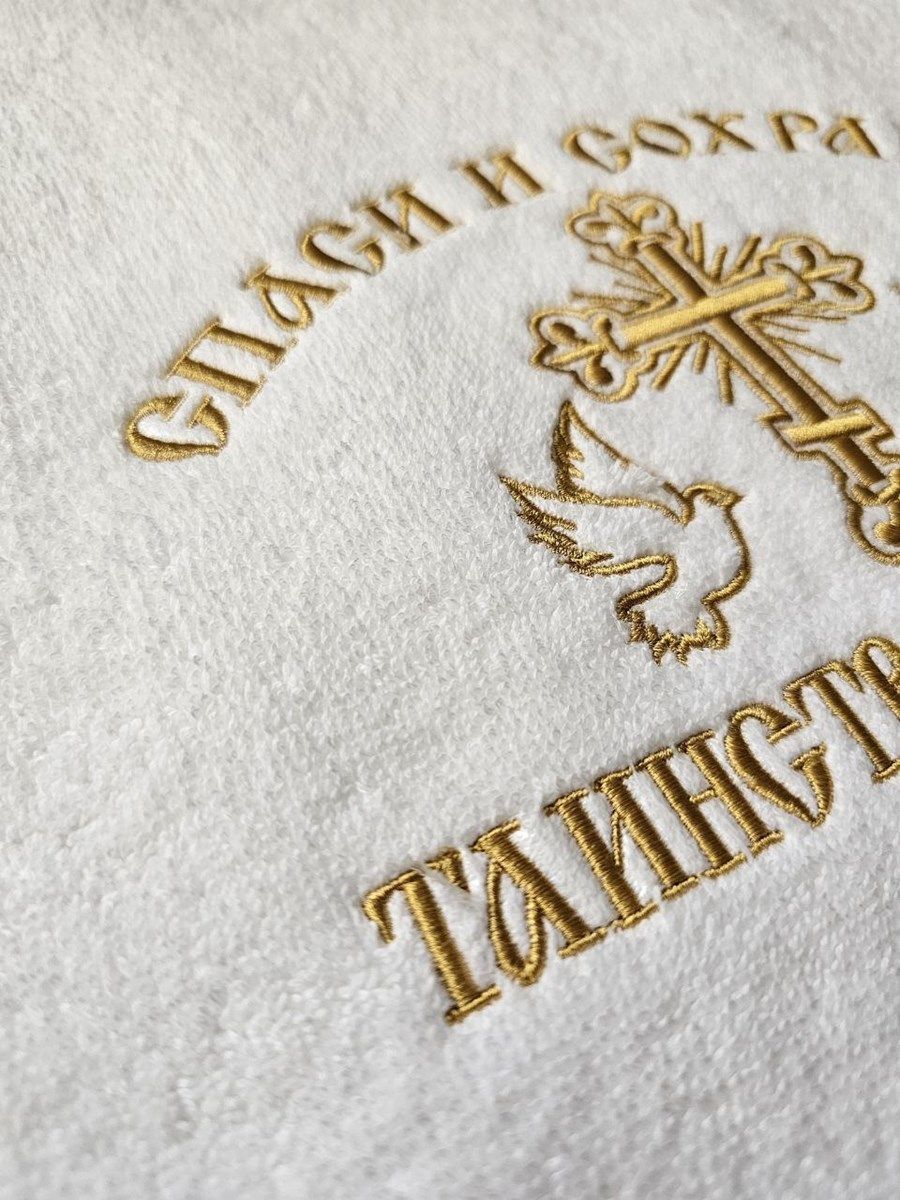 Полотенце с вышивкой 70*140 "спаси и сохрани" белое (заказ от 10шт.)