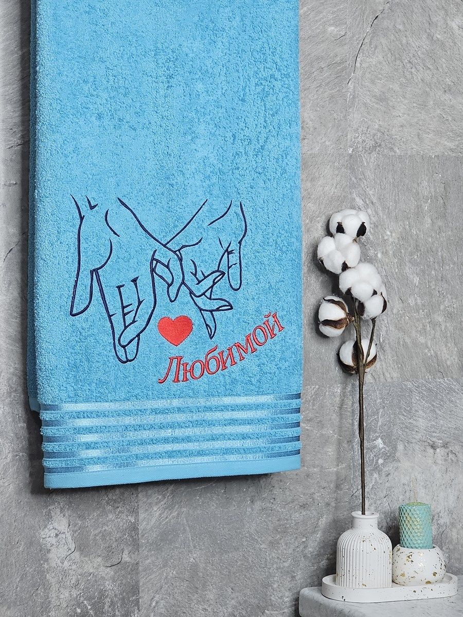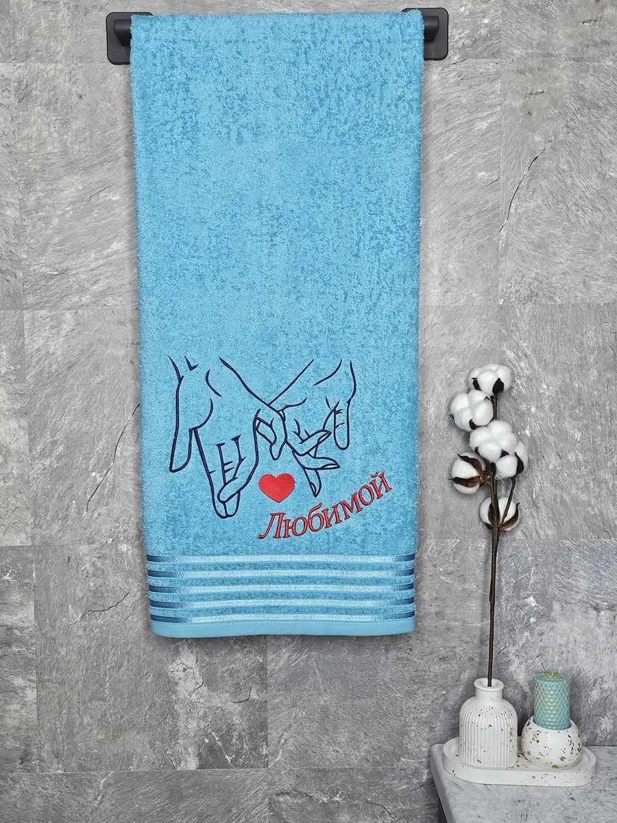 Полотенце с вышивкой 70*140 "любимой" голубое POL/любимой/739