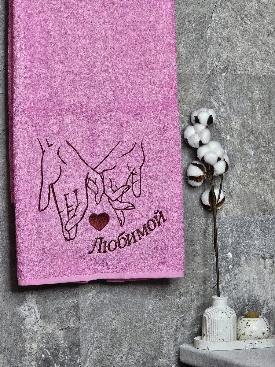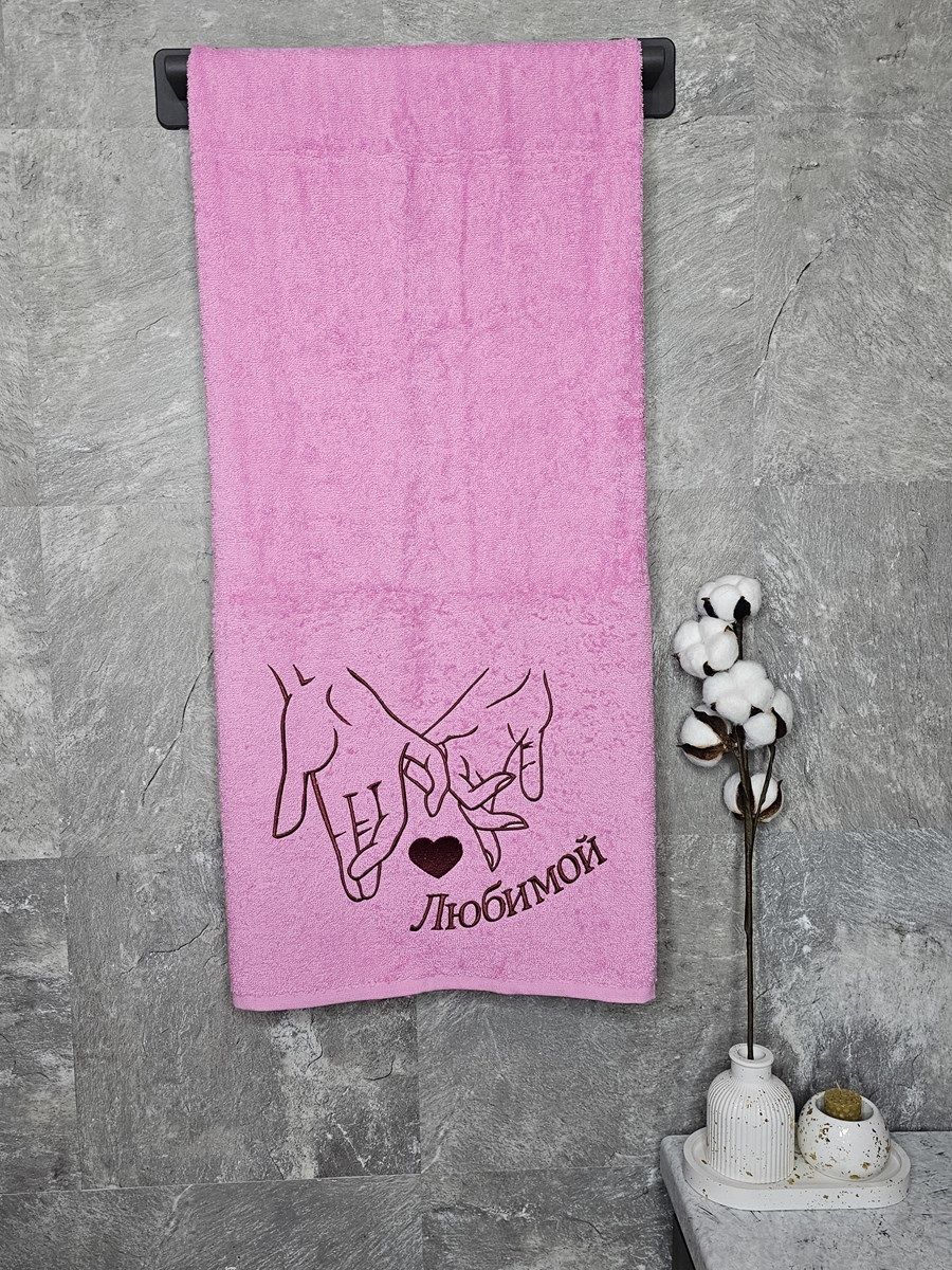 Полотенце с вышивкой 70*140 "любимой" розовое без бордюра POL/любимой/661