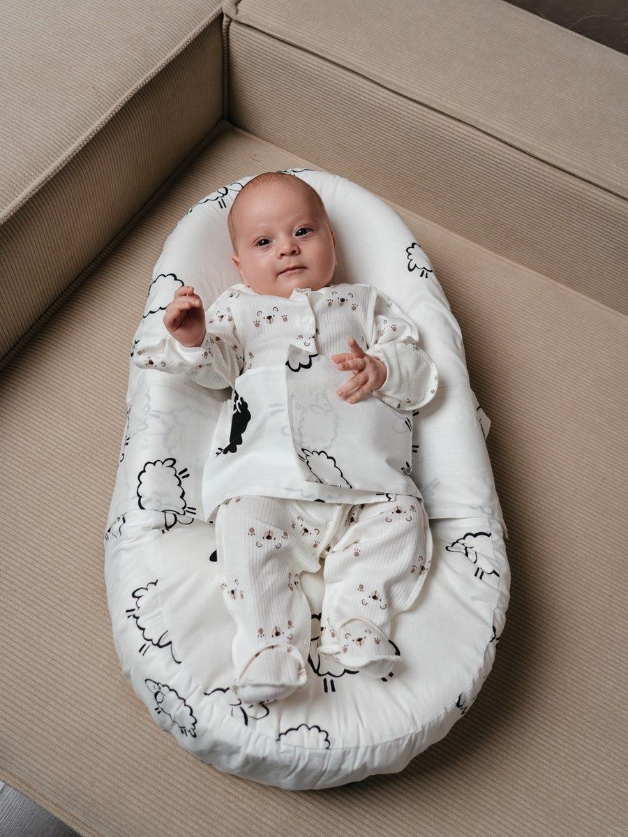 Удобная люлька создана для новорожденных и удобна тем, что её можно расположить как в  кроватке, так и на диване. Инновационный материал  с «эффектом памяти» мягкий и упругий, поэтому бережно поддержит малыша. Анатомическая форма люльки выполнена с учетом особенностей новорожденного, наличие  упругих бортиков обеспечит те самые ощущения ,как у мамы в животике, благодаря которым малыш  будет чувствовать  себя особенно спокойно , а его сон станет крепче.  В комплект входит валик под ноги, который поможет создать «привычное положение», чтобы сон малыша был спокойнее, а широкий пояс на липучке поможет зафиксировать малыша для безопасности. Верхняя поверхность  внутреннего чехла выполнена из мулетона - махровой ткани с водонепроницаемой мембраной, которая надежно защитит кокон от влаги.  Съёмная бязевая наволочка из 100% хлопка мягкая и шелковистая, ее эластичность создаст максимально комфортные ощущения, не сковывая движений малыша.