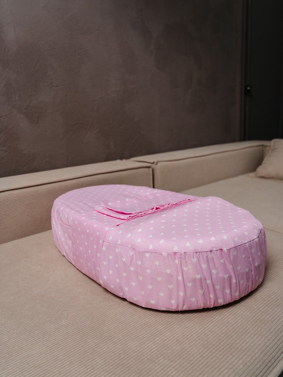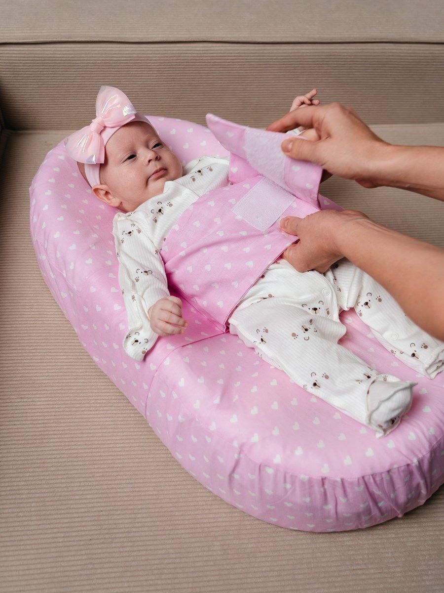 Удобная люлька создана для новорожденных и удобна тем, что её можно расположить как в  кроватке, так и на диване. Инновационный материал  с «эффектом памяти» мягкий и упругий, поэтому бережно поддержит малыша. Анатомическая форма люльки выполнена с учетом особенностей новорожденного, наличие  упругих бортиков обеспечит те самые ощущения ,как у мамы в животике, благодаря которым малыш  будет чувствовать  себя особенно спокойно , а его сон станет крепче.  В комплект входит валик под ноги, который поможет создать «привычное положение», чтобы сон малыша был спокойнее, а широкий пояс на липучке поможет зафиксировать малыша для безопасности. Верхняя поверхность  внутреннего чехла выполнена из мулетона - махровой ткани с водонепроницаемой мембраной, которая надежно защитит кокон от влаги.  Съёмная бязевая наволочка из 100% хлопка мягкая и шелковистая, ее эластичность создаст максимально комфортные ощущения, не сковывая движений малыша.