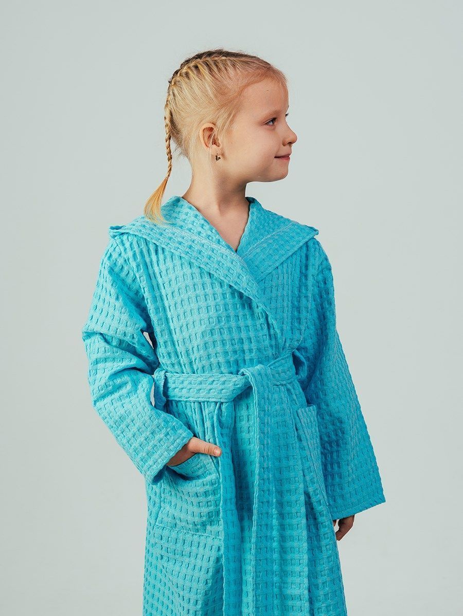 Вафельный халатик для детей, выполненный из натурального материала – 100% хлопка с карманом, удобен и универсален.  Ткань не вызывает аллергии и раздражения кожи, прекрасно пропускает воздух,  быстро впитывает влагу и так же мгновенно сохнет.   Форма халата с запахом и широким поясом позволит использовать его долгое время, несмотря на быстрый рост ребенка. Поэтому для домашнего ухода за детьми вафельный халат является одной из самых удобных и практичных вещей.   Халат из вафельной ткани легкий и практичный, благодаря натуральному составу ткани сохраняется комфортная температура тела,  идеальная для жаркого лета.   После любых водных процедур, вафельный халатик создаст приятную прохладу и быстро высушит тело, он свободный и приятный к детской коже.