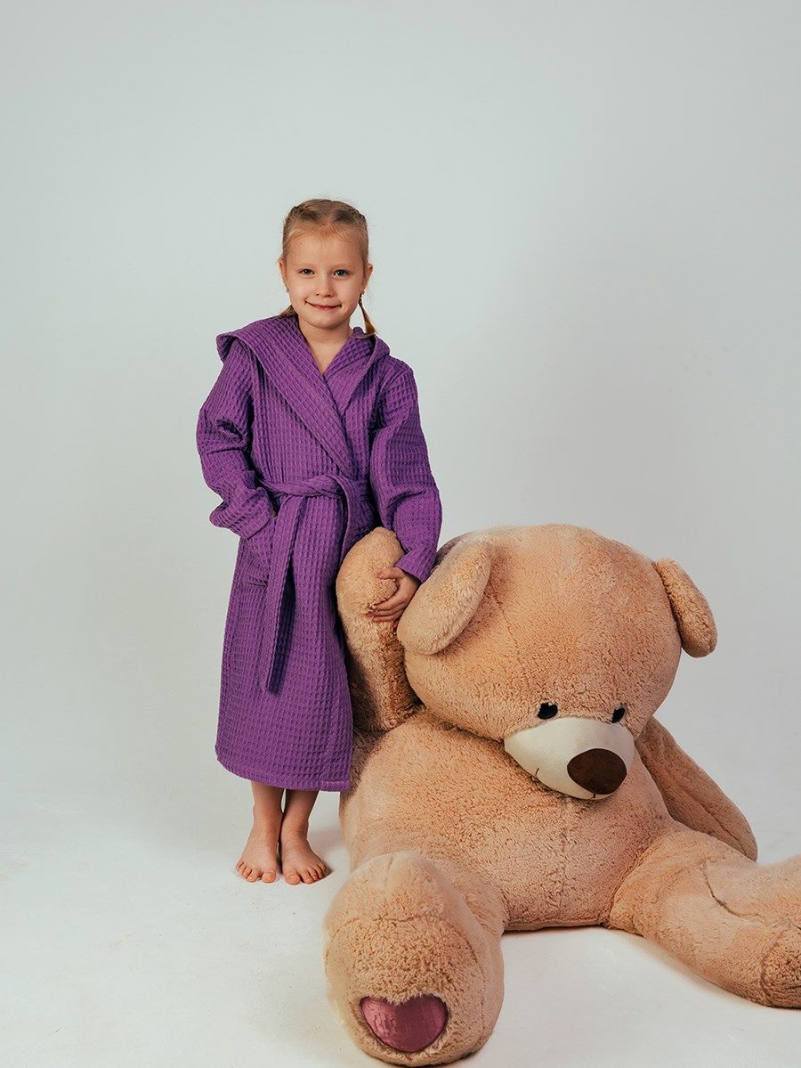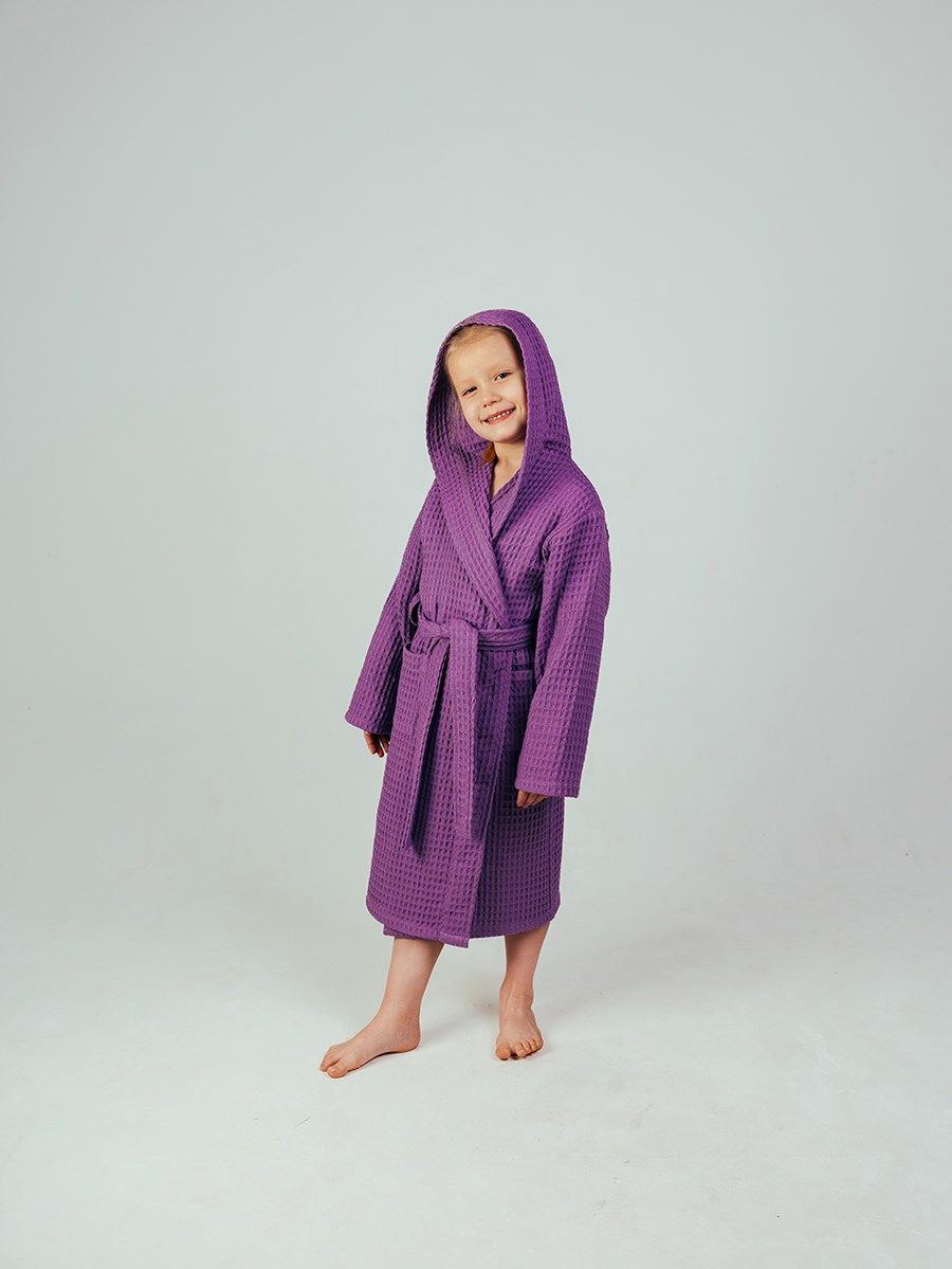 Вафельный халатик для детей, выполненный из натурального материала – 100% хлопка с карманом, удобен и универсален.  Ткань не вызывает аллергии и раздражения кожи, прекрасно пропускает воздух,  быстро впитывает влагу и так же мгновенно сохнет.   Форма халата с запахом и широким поясом позволит использовать его долгое время, несмотря на быстрый рост ребенка. Поэтому для домашнего ухода за детьми вафельный халат является одной из самых удобных и практичных вещей.   Халат из вафельной ткани легкий и практичный, благодаря натуральному составу ткани сохраняется комфортная температура тела,  идеальная для жаркого лета.   После любых водных процедур, вафельный халатик создаст приятную прохладу и быстро высушит тело, он свободный и приятный к детской коже.