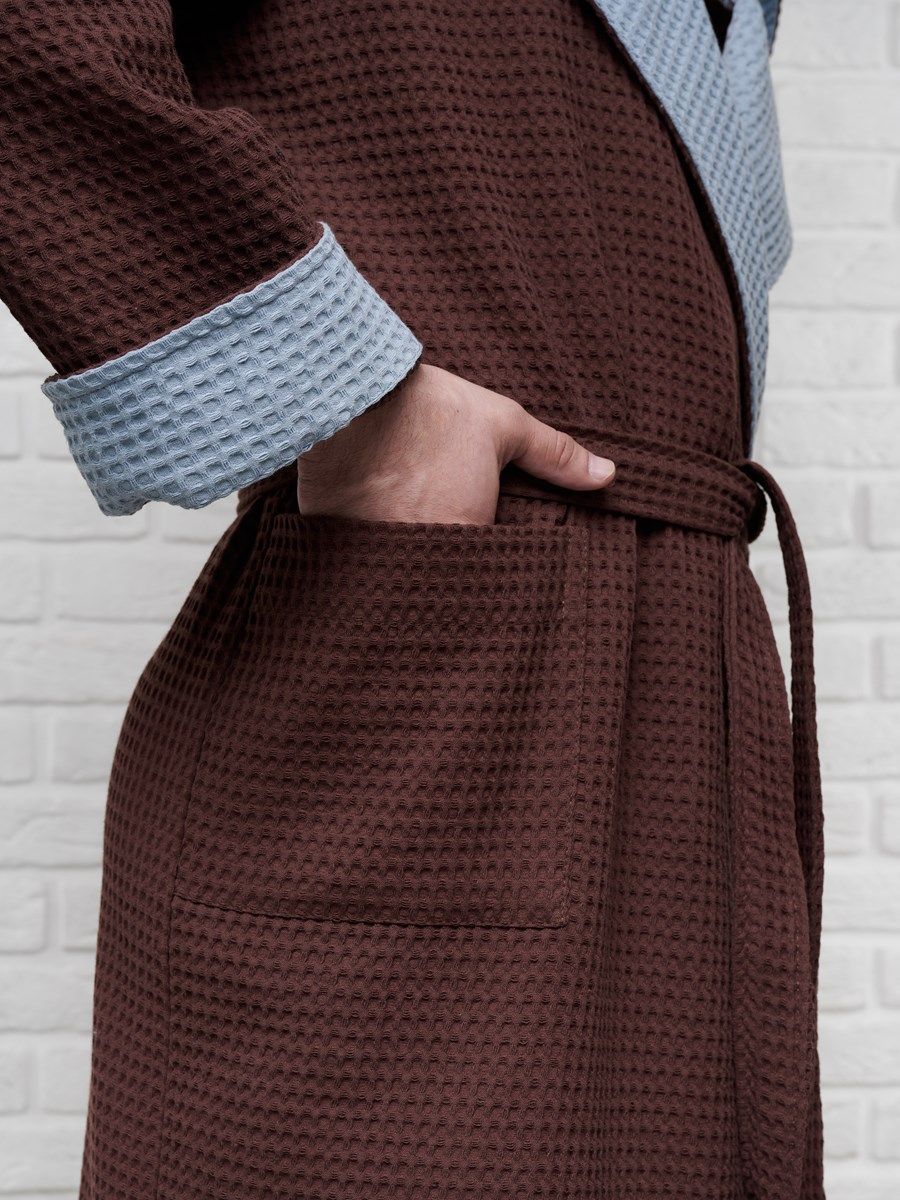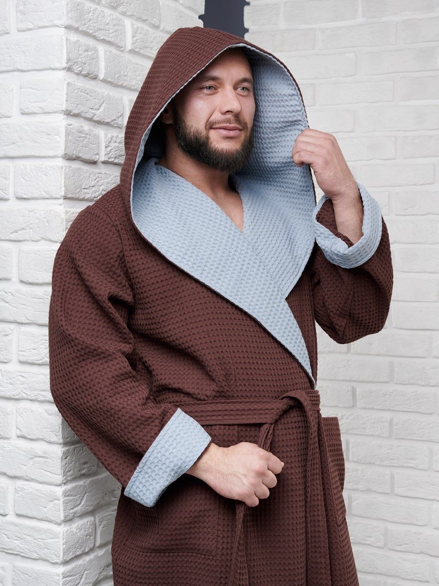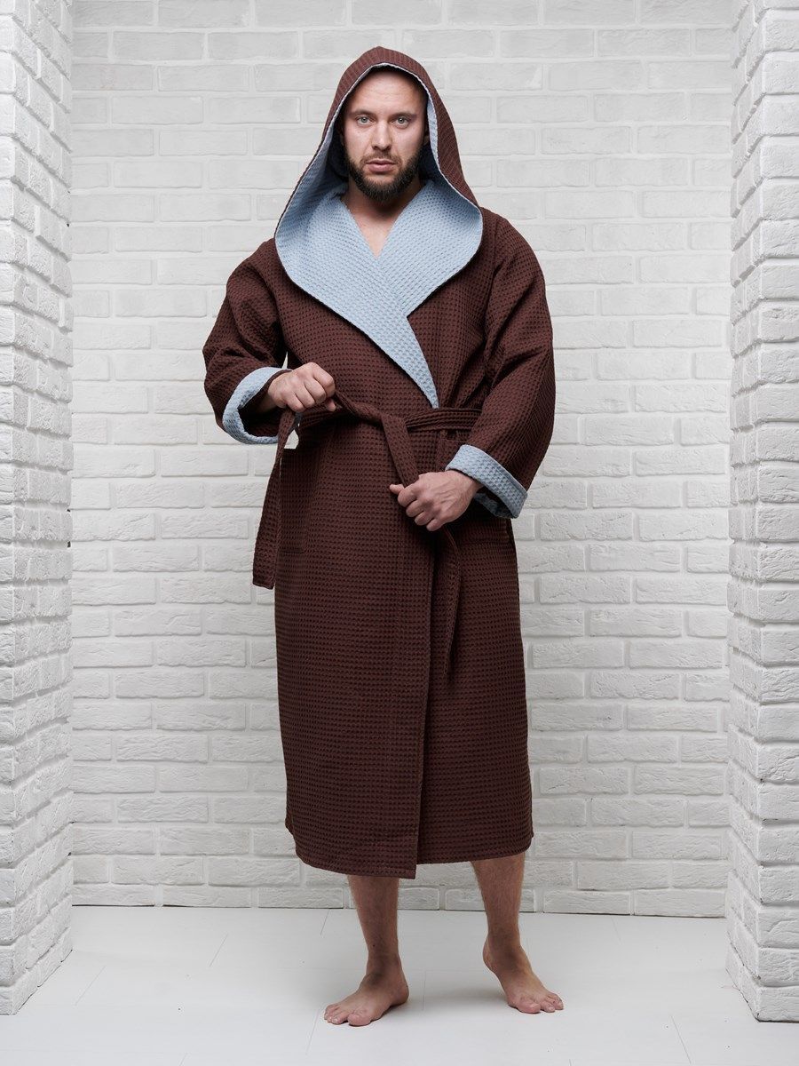 Халат вафельный с капюшоном, два цвета, темный шоколад