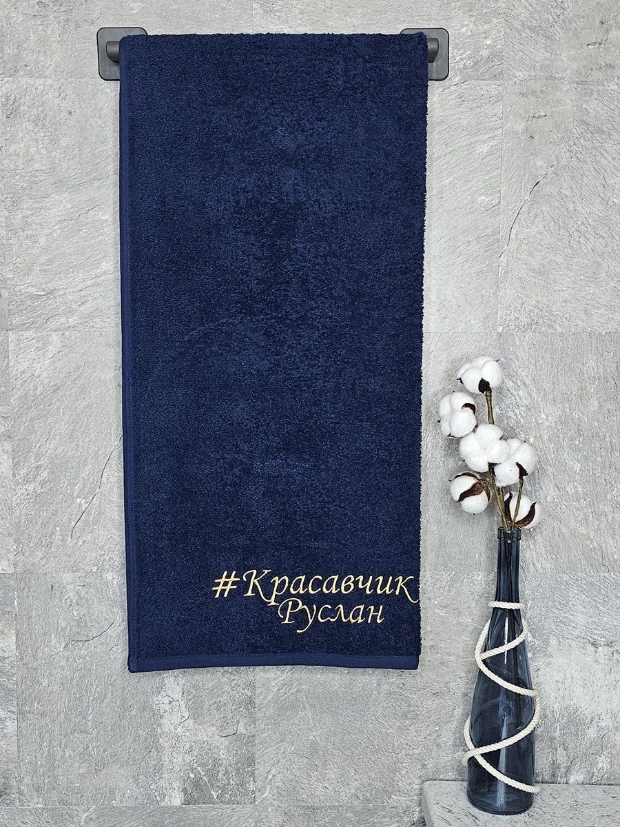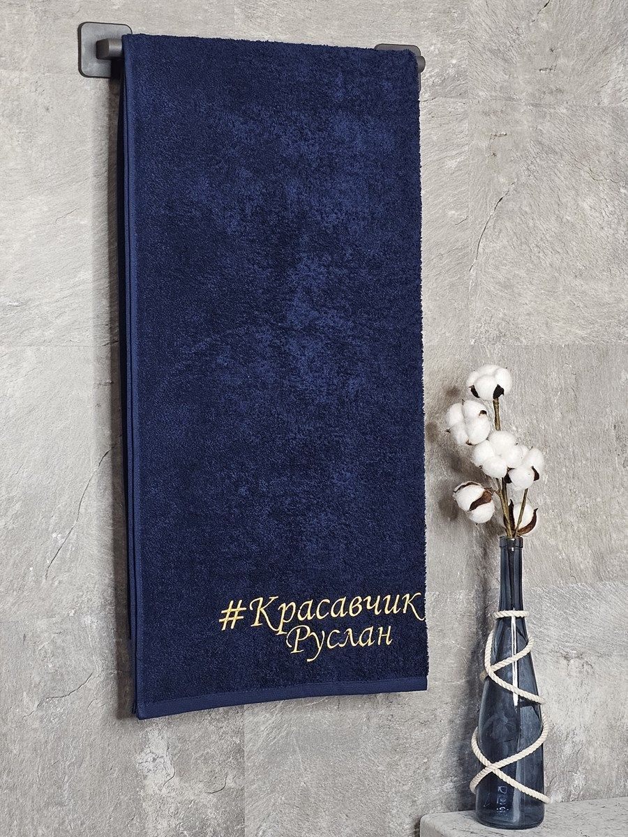 Полотенце с вышивкой 70*140 "красавчик" Руслан темно-синее