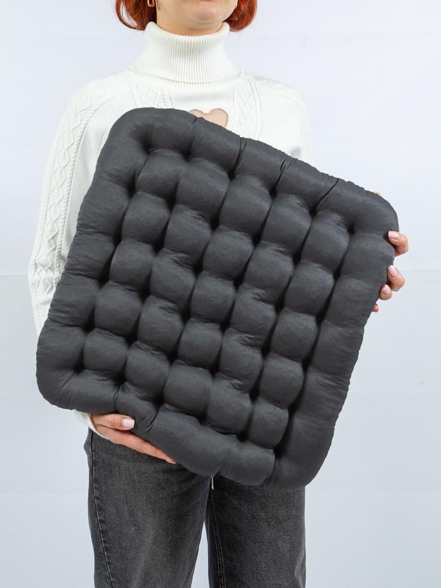 Био-подушка на стул с лузгой гречихи темно-серая 50*45