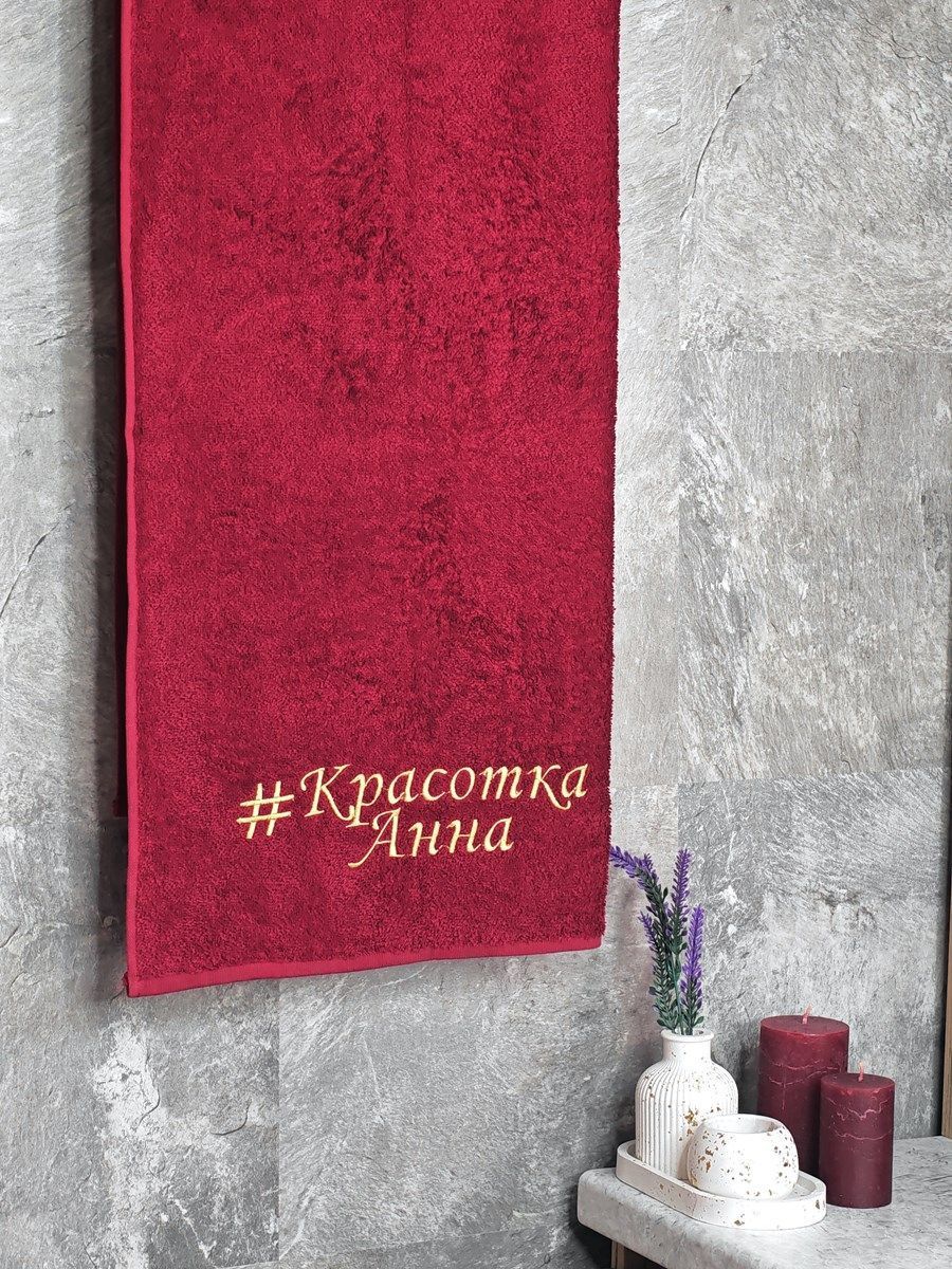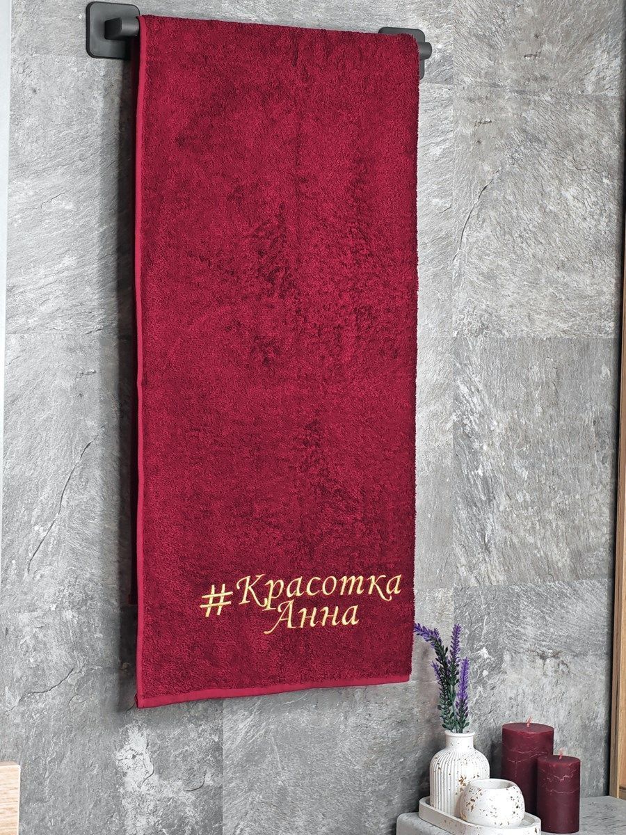 Полотенце с вышивкой 70*140 "Красотка Анна" бордо