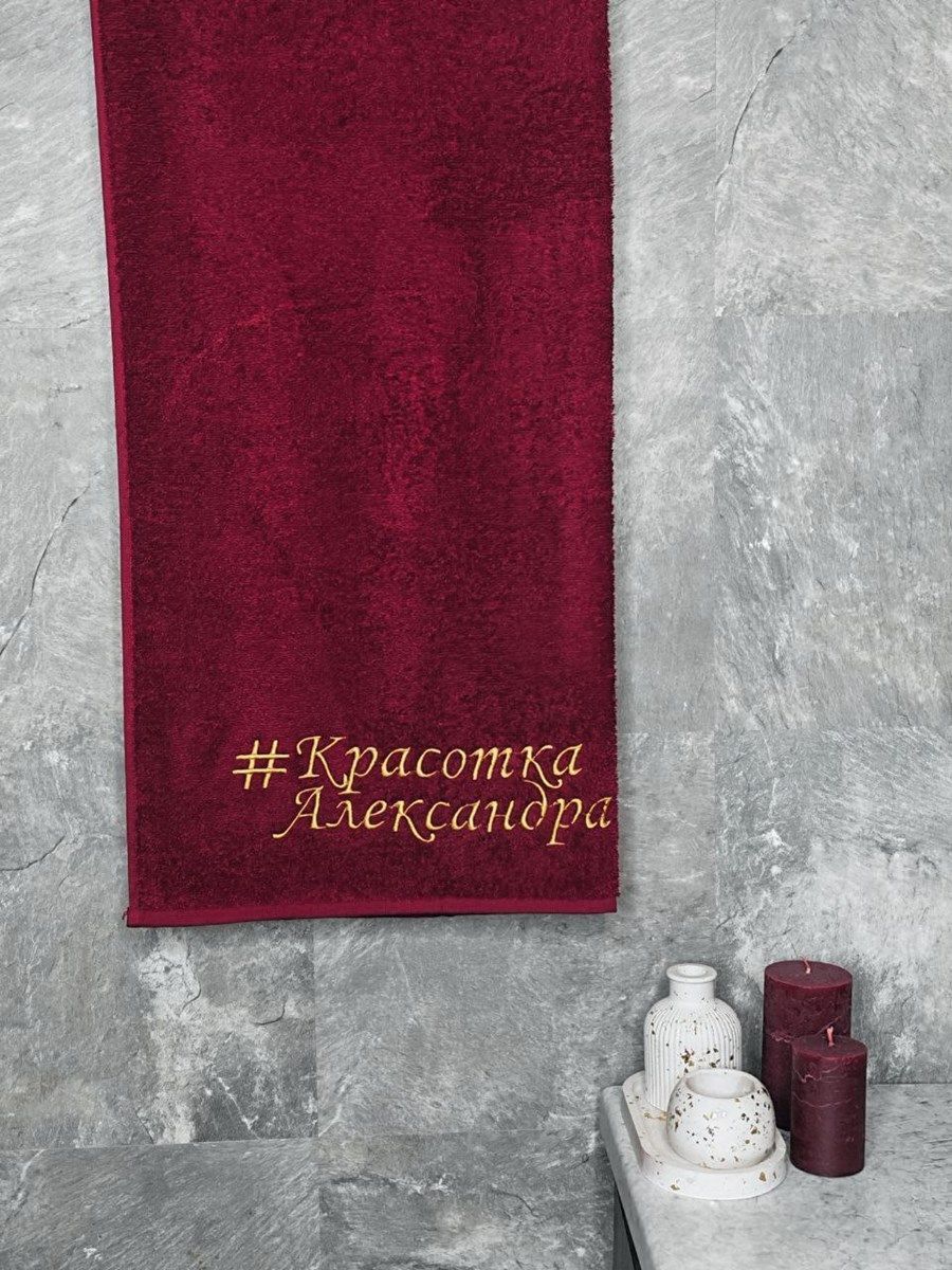 Полотенце с вышивкой 70*140 "Красотка Александра" бордо