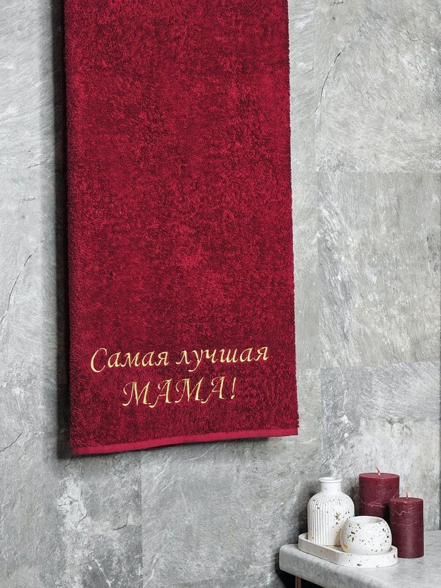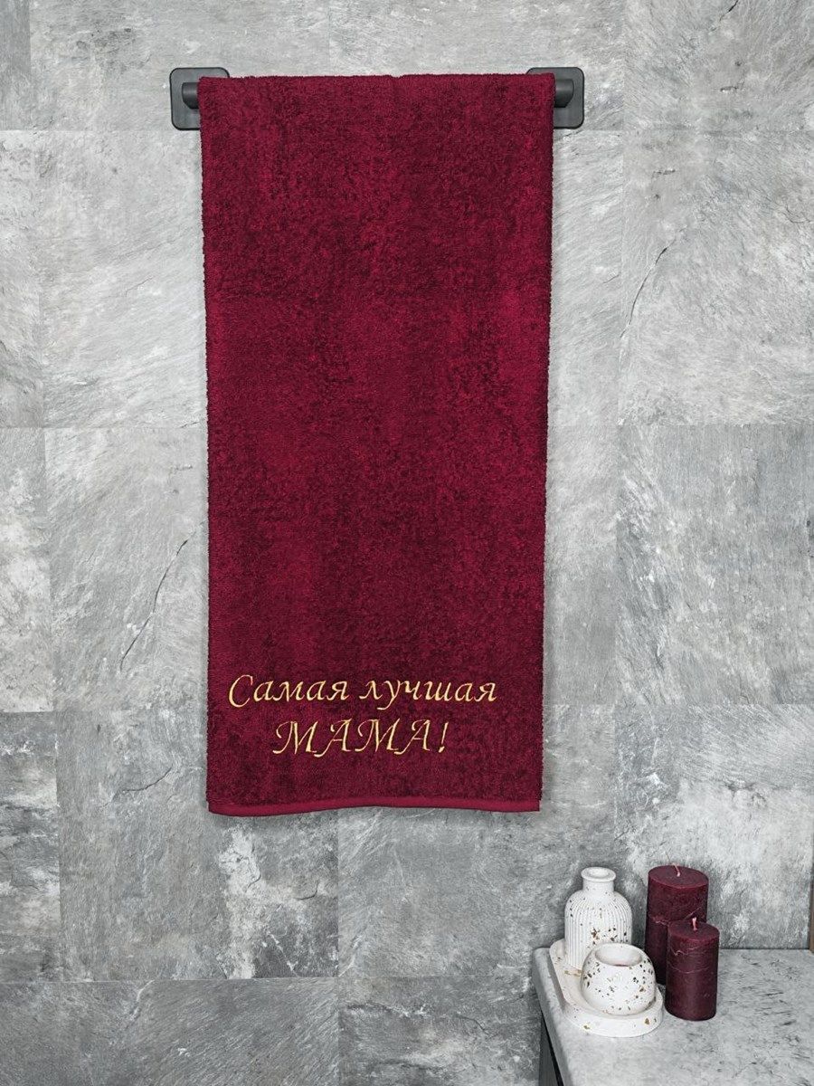 Полотенце с вышивкой 70*140 "самая Лучшая мама" бордо