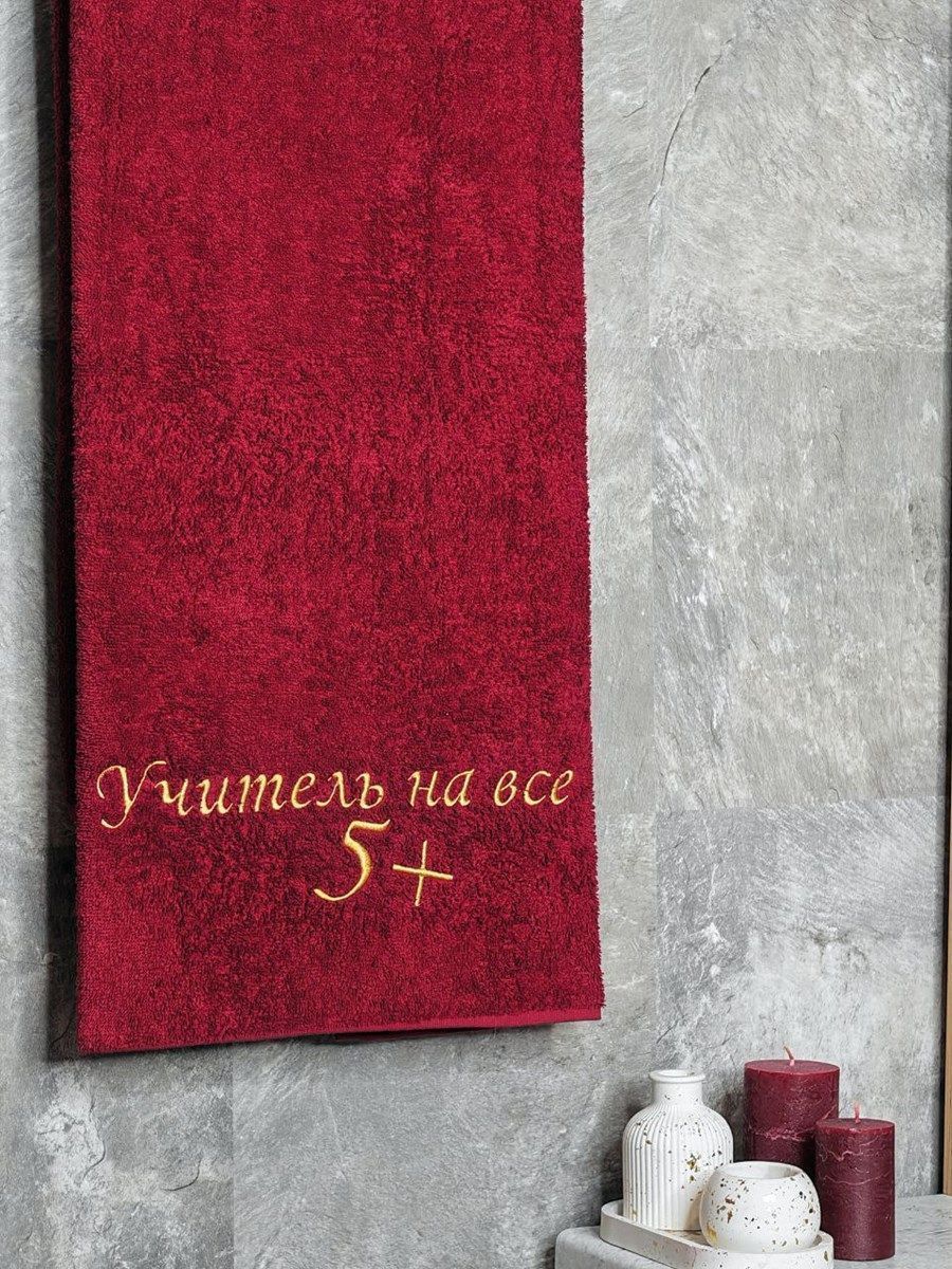 Полотенце с вышивкой 70*140 "Учитель 5+" бордо POL/учитель_бордо