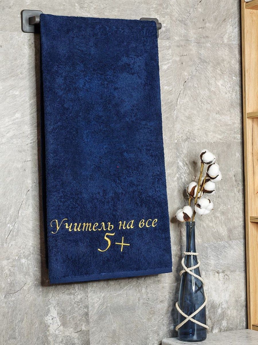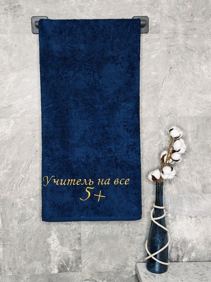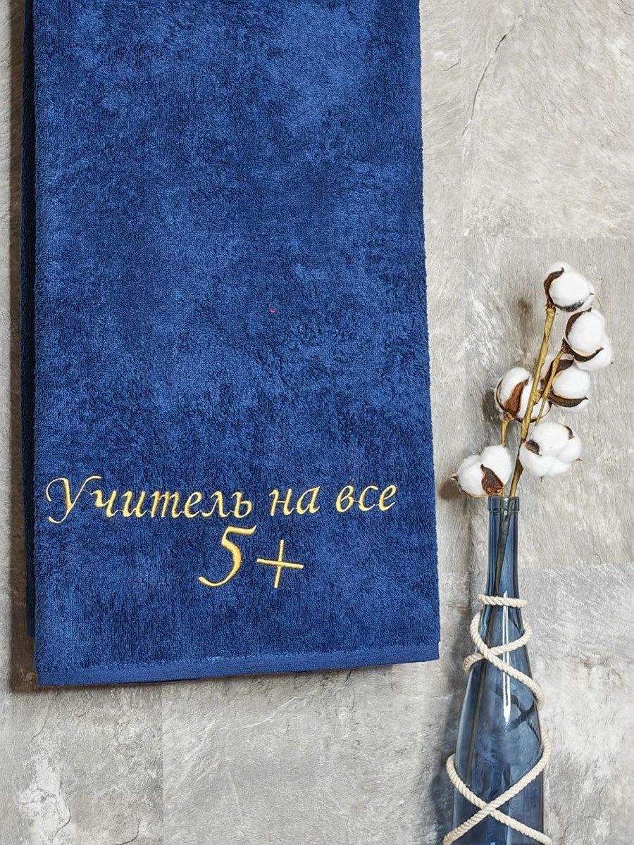 Полотенце с вышивкой 70*140 "Учитель 5+" темно-синее