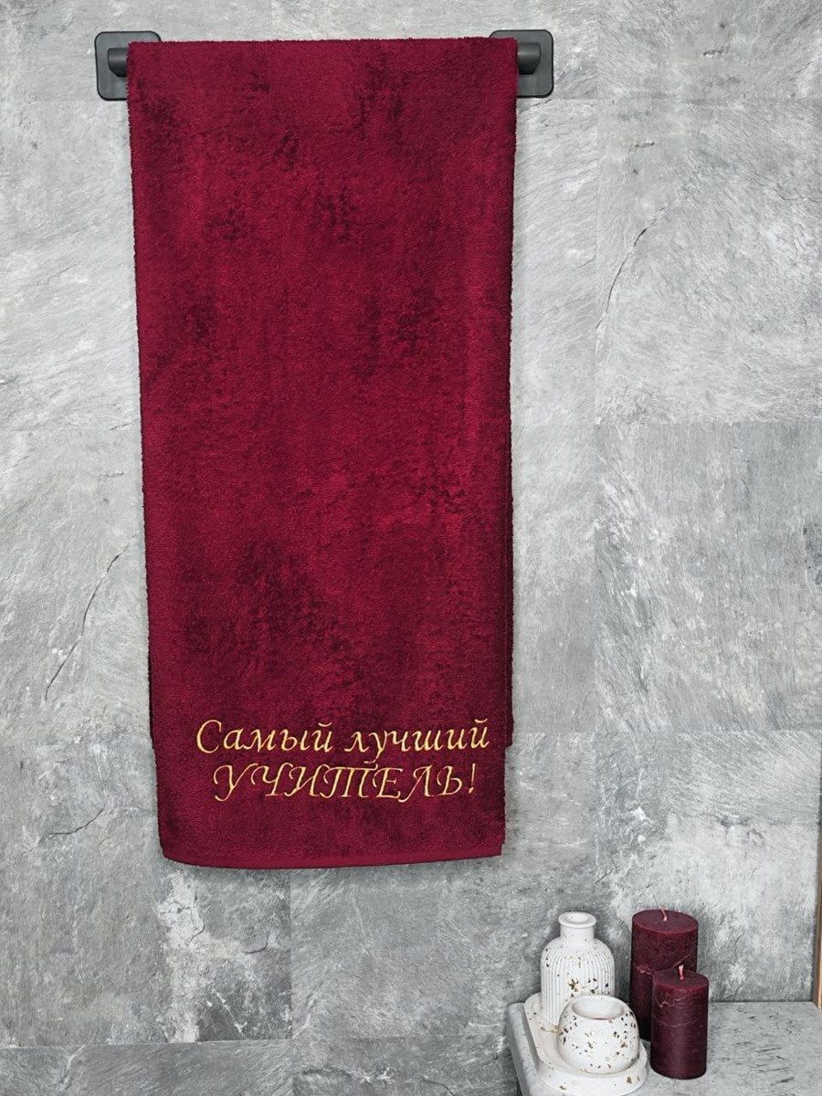 Полотенце с вышивкой 70*140 "Лучший УЧИТЕЛЬ" бордо