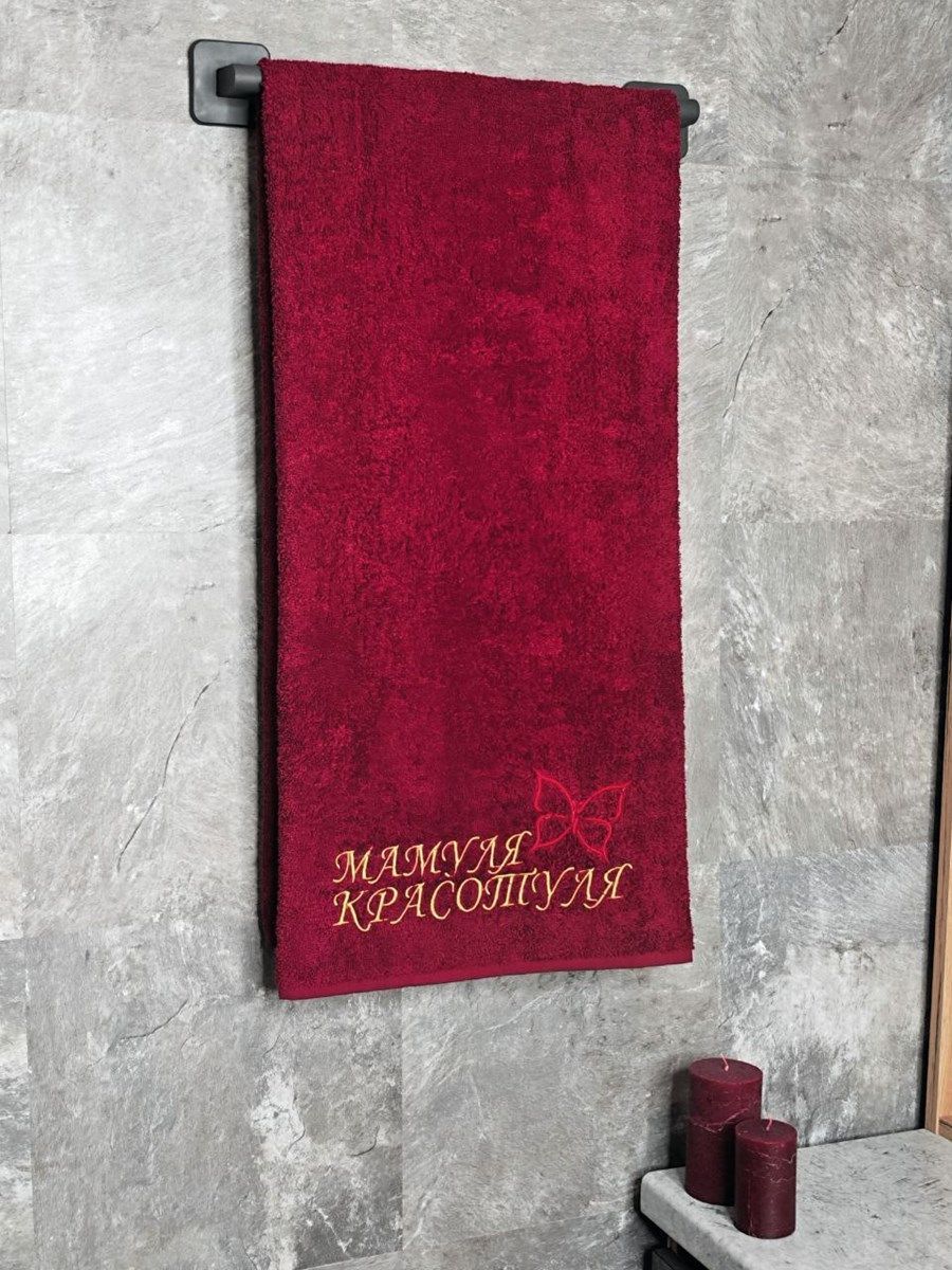 Полотенце с вышивкой 70*140 "Мамуля красотуля" бордо